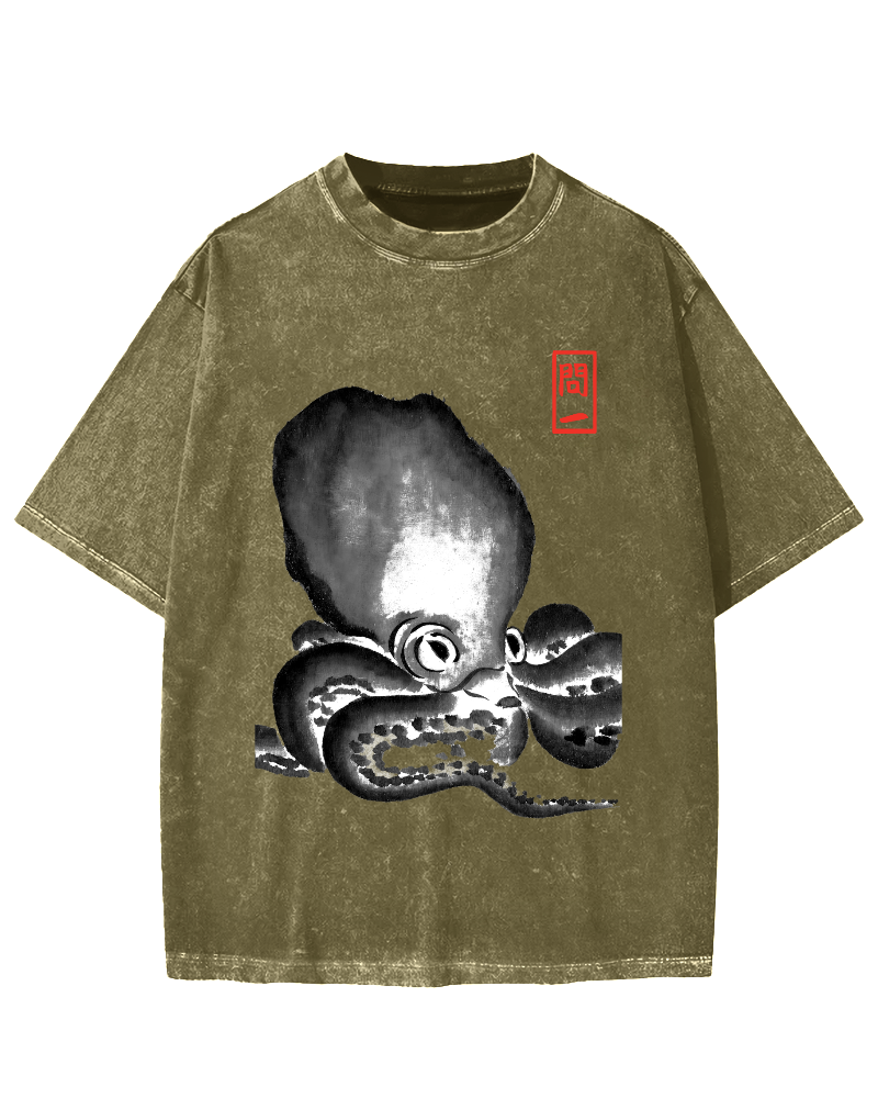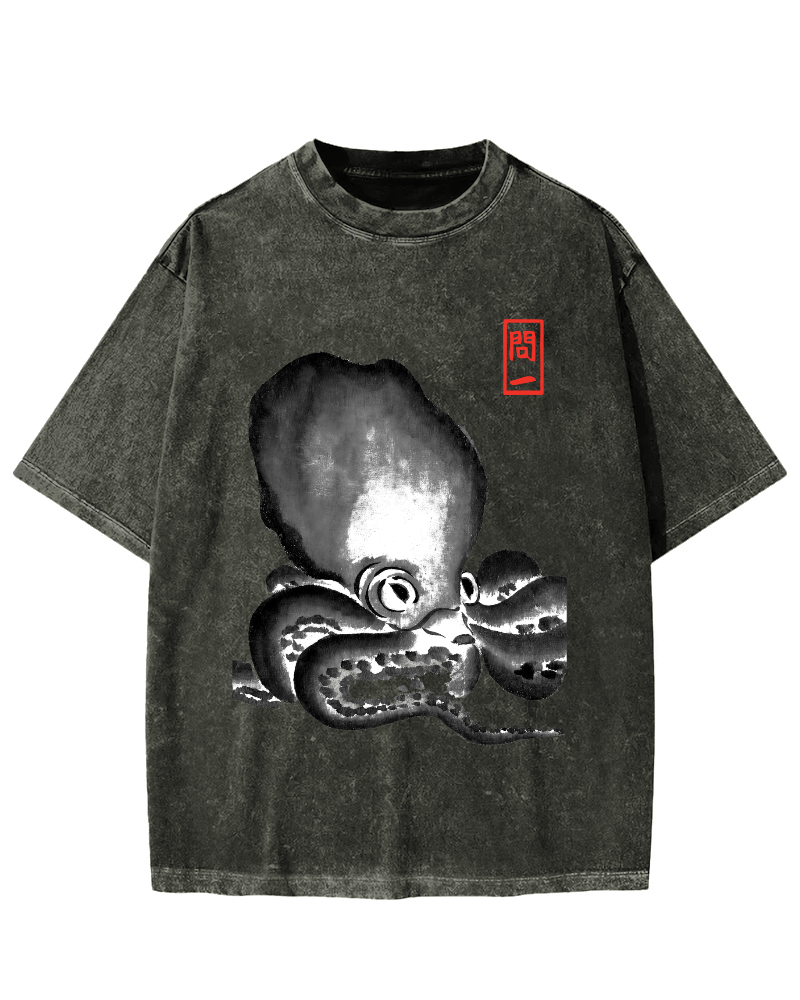 Retro Octopus Vintage Washed T-shirt