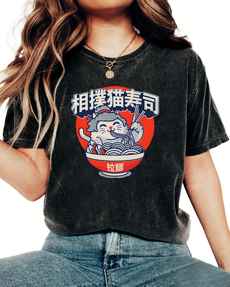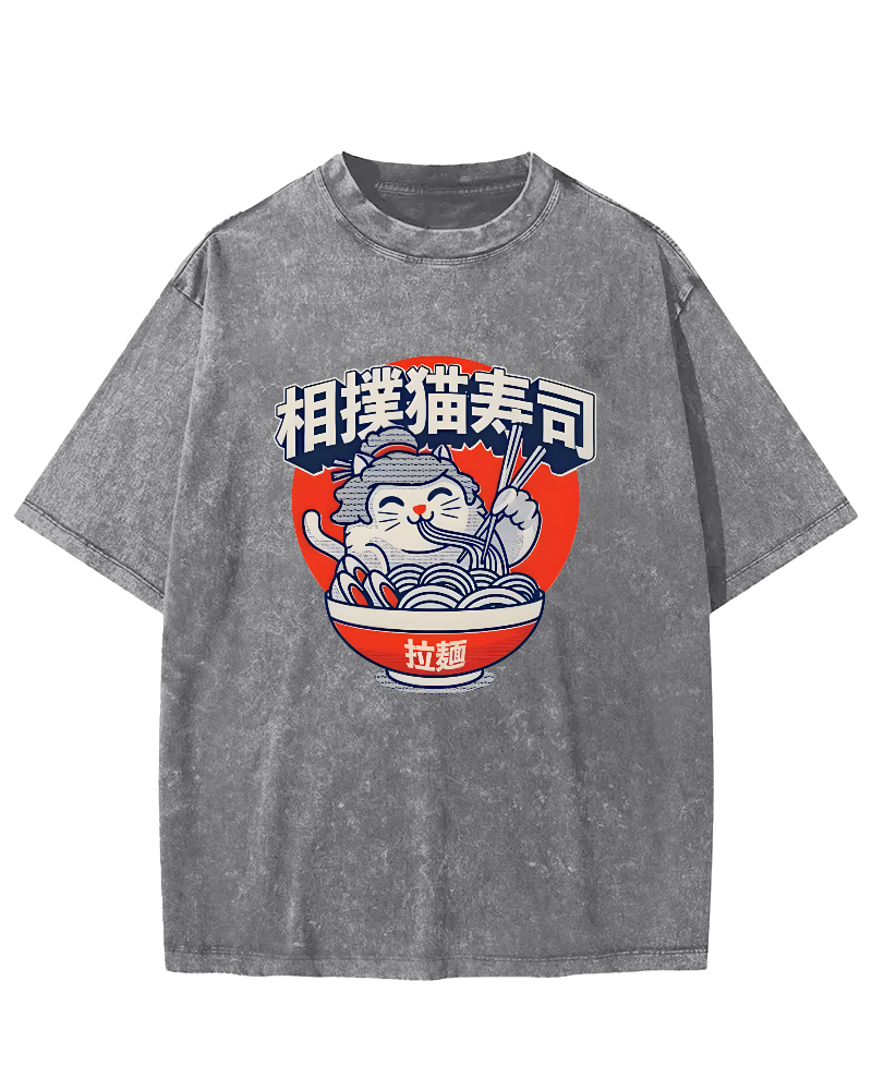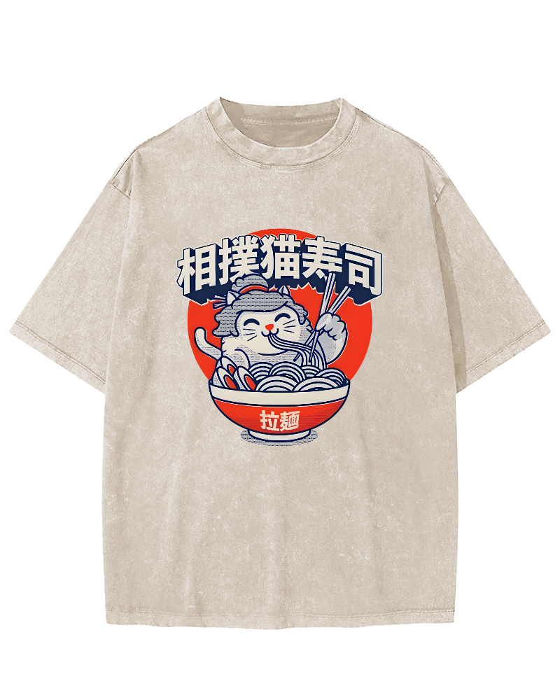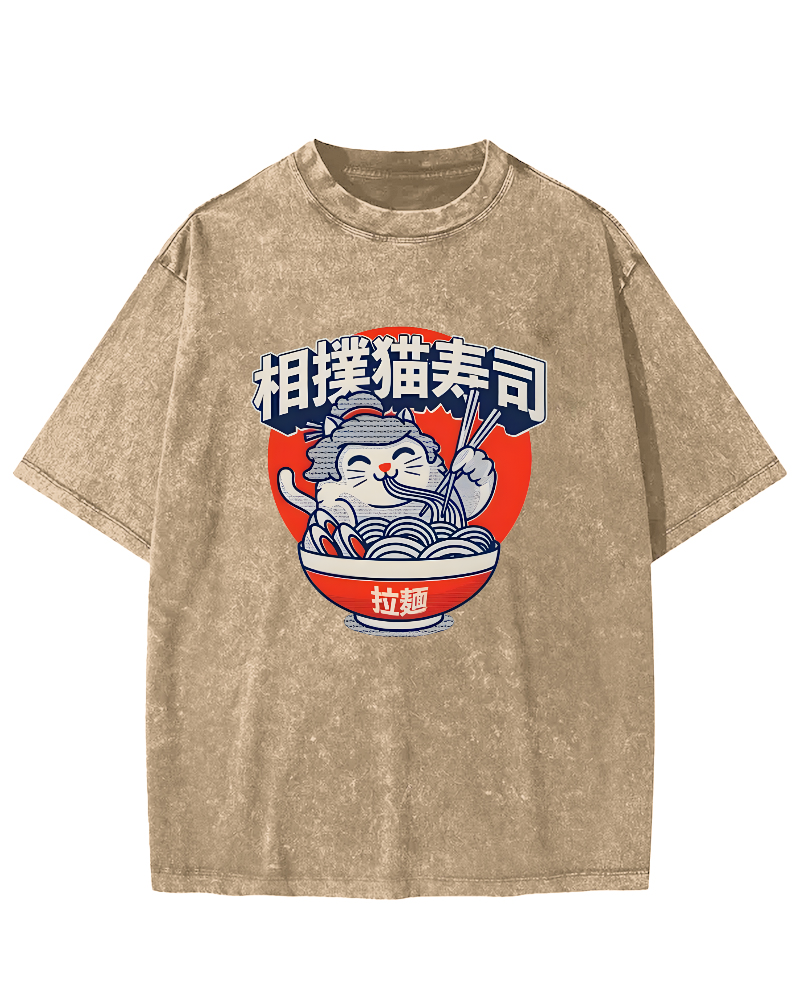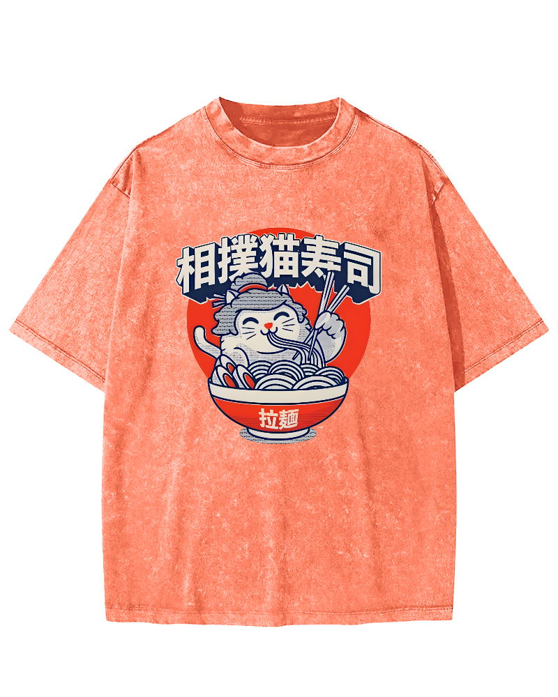 • Sumo cat Lamian Noodles feast Vintage Washed T-shirt