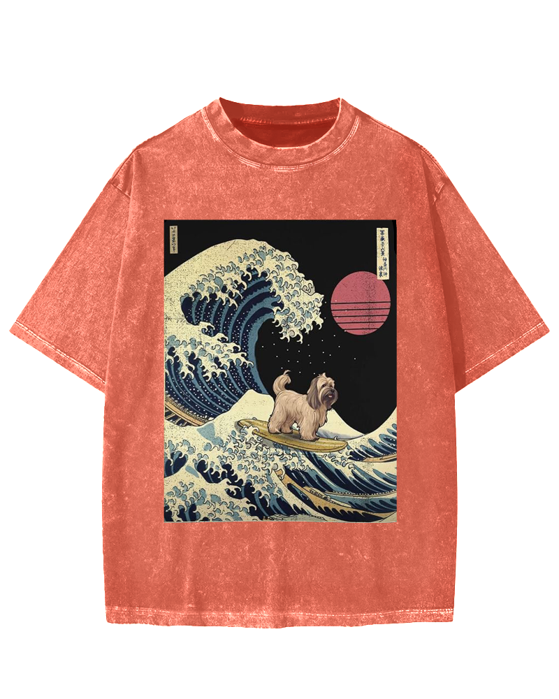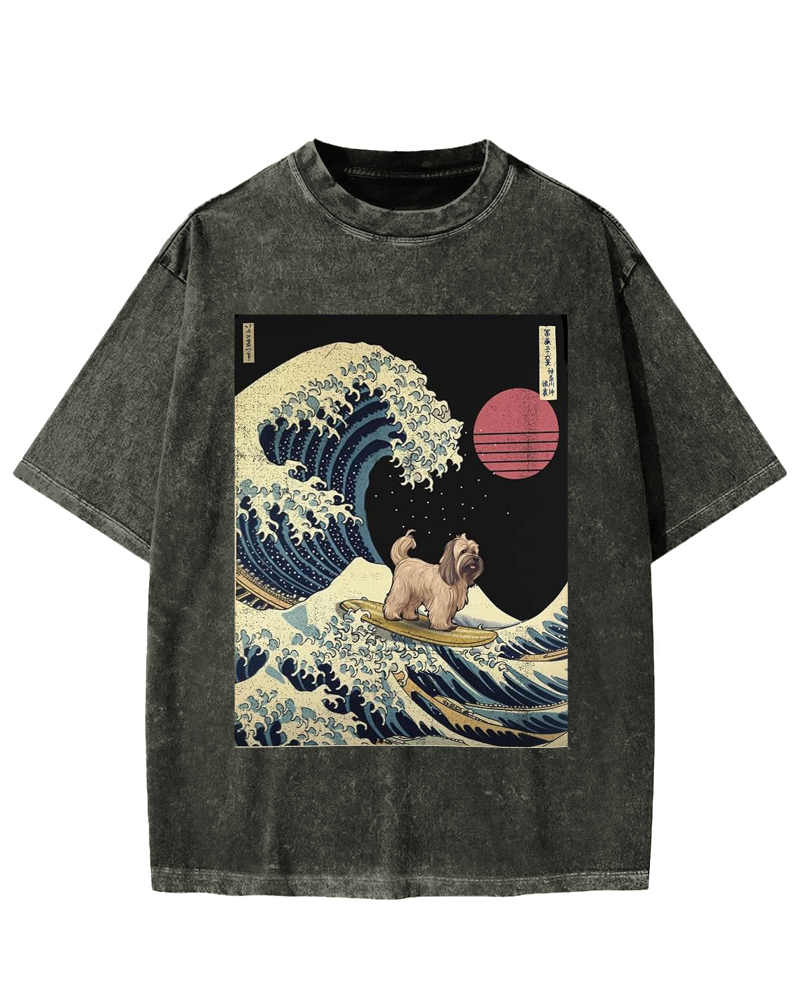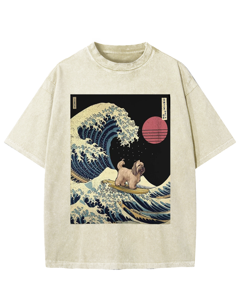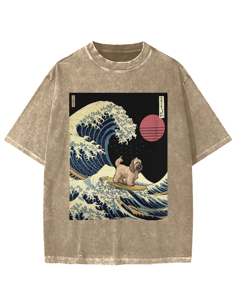• The Great Wave off Kanagawa Dog Vintage Washed T-shirt