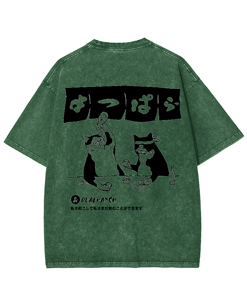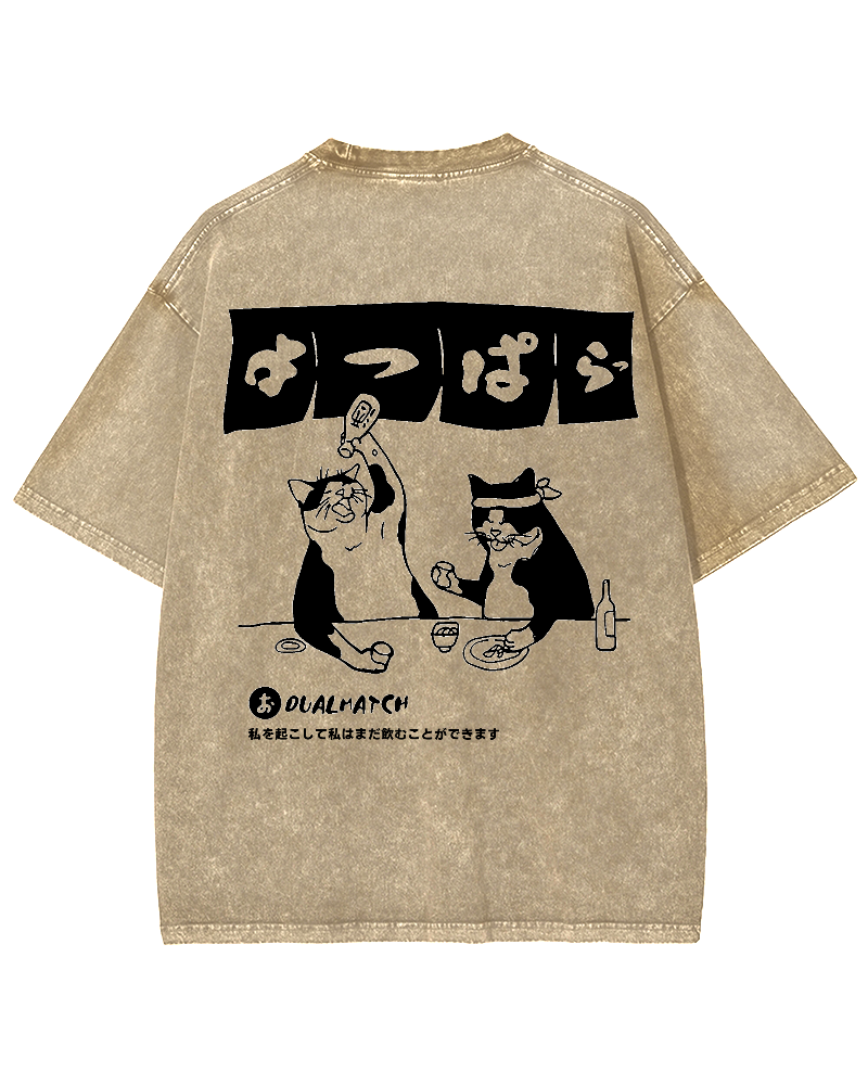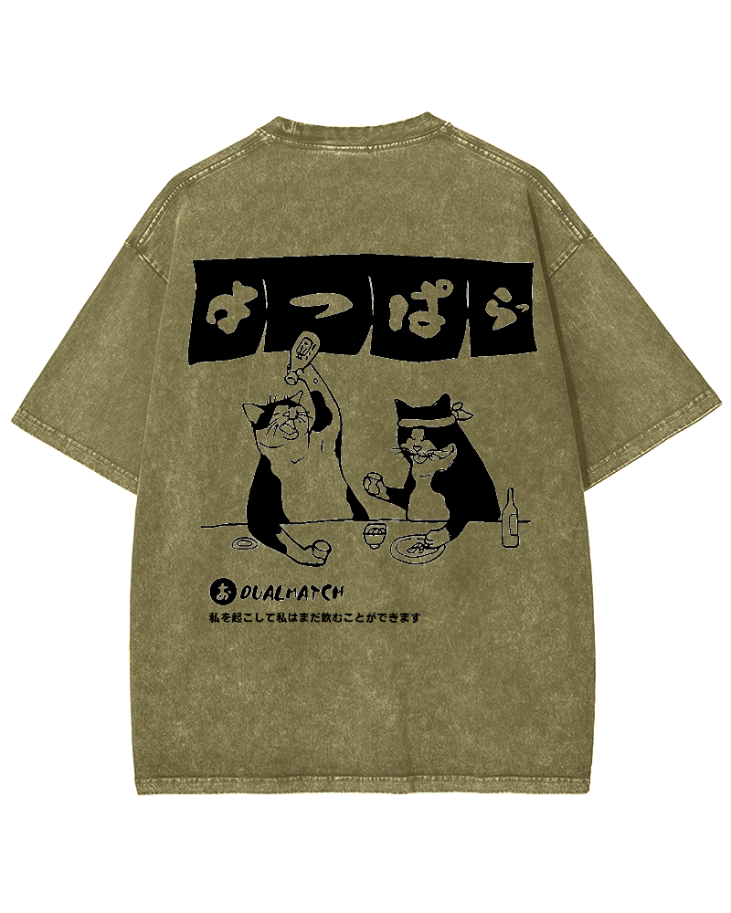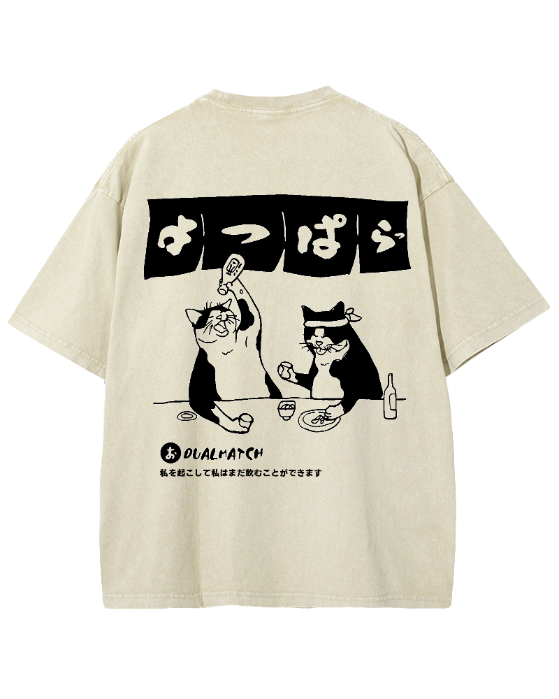 • Wake me up I can still drink Cat Izakaya Back printing Vintage Washed T-shirt