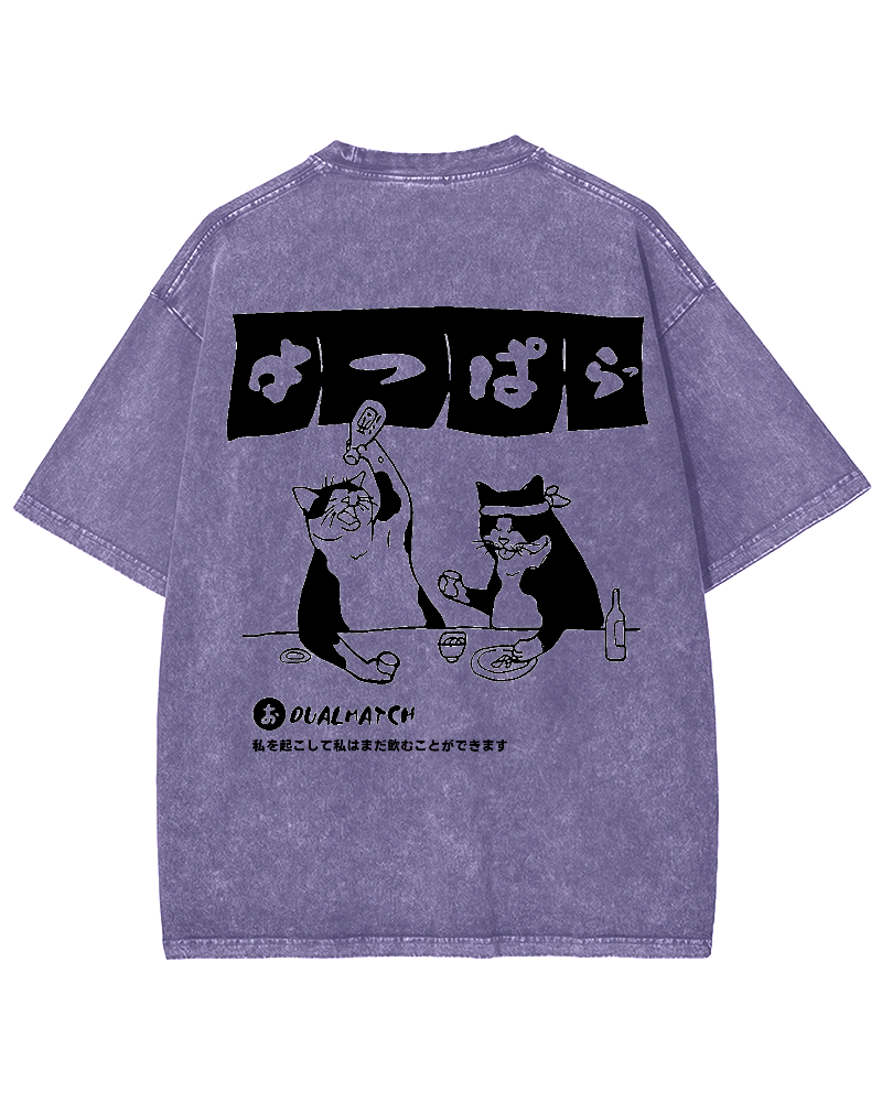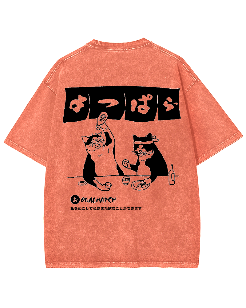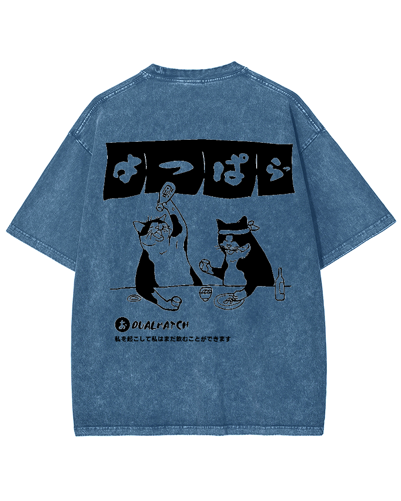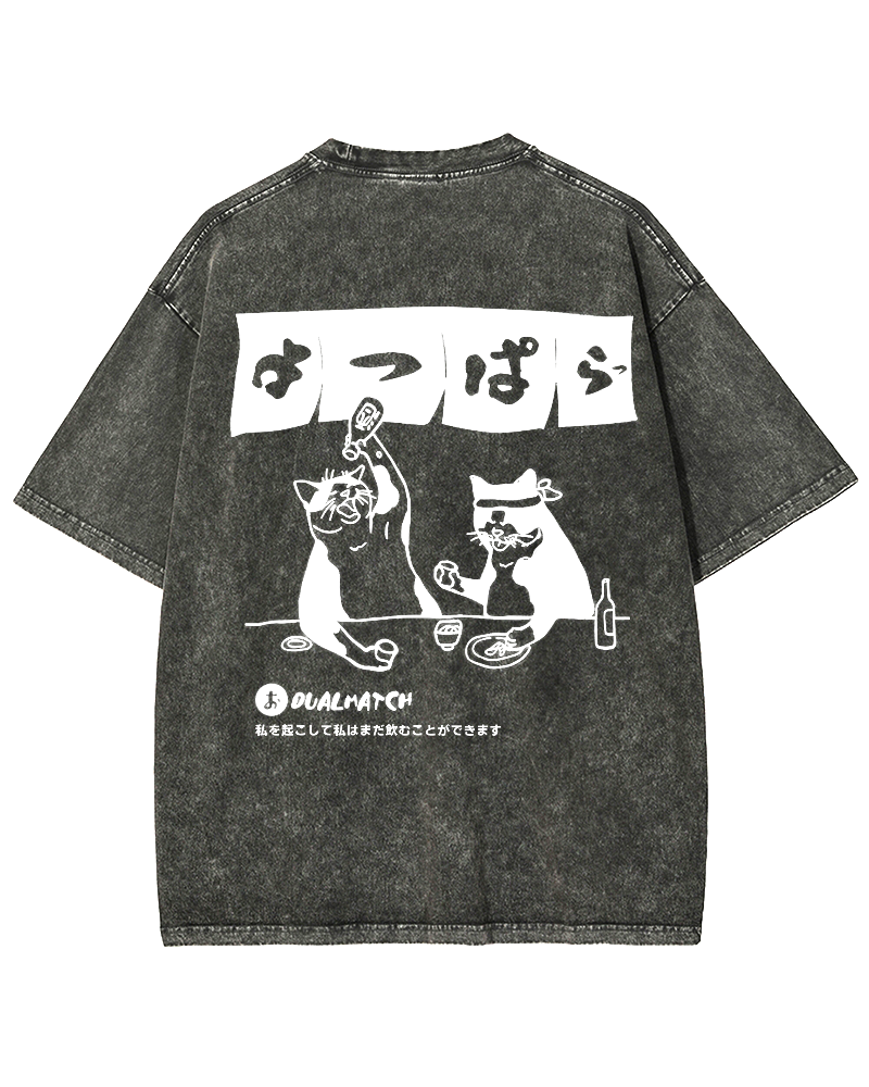 • Wake me up I can still drink Cat Izakaya Back printing Vintage Washed T-shirt