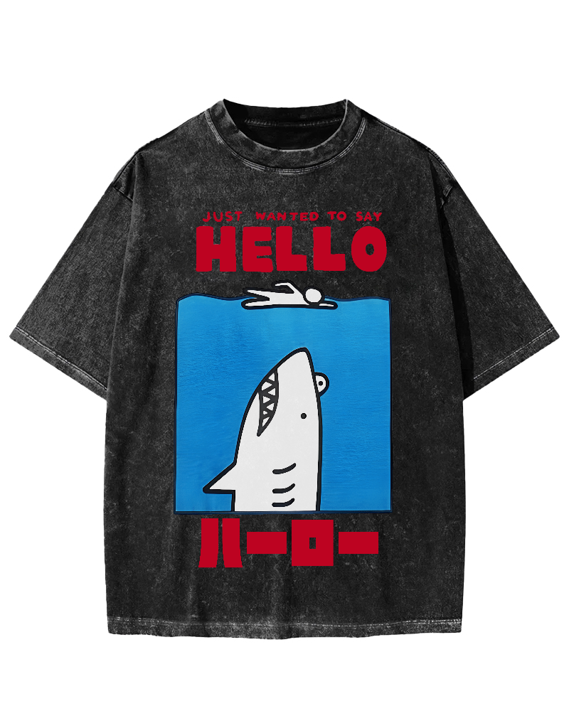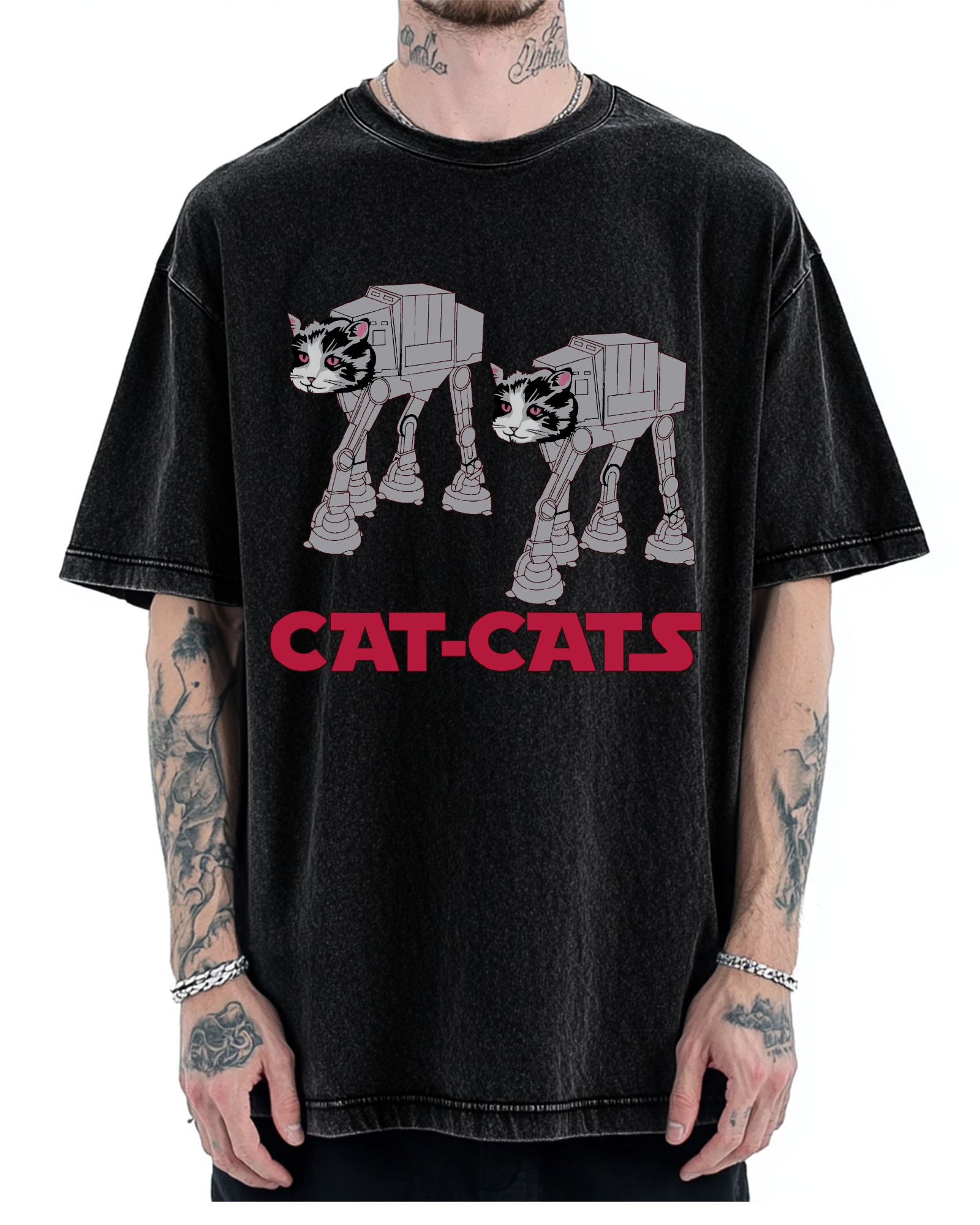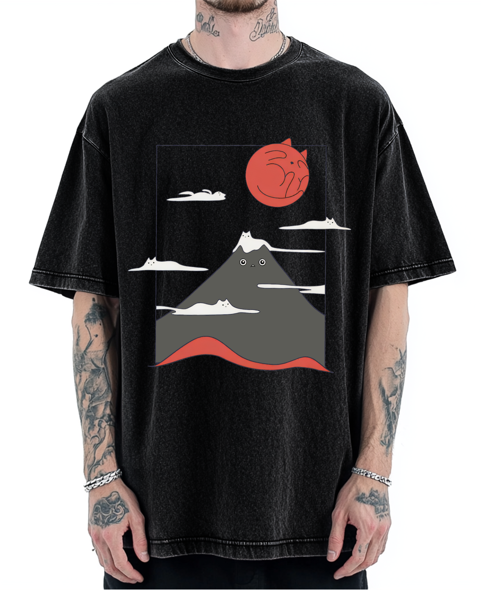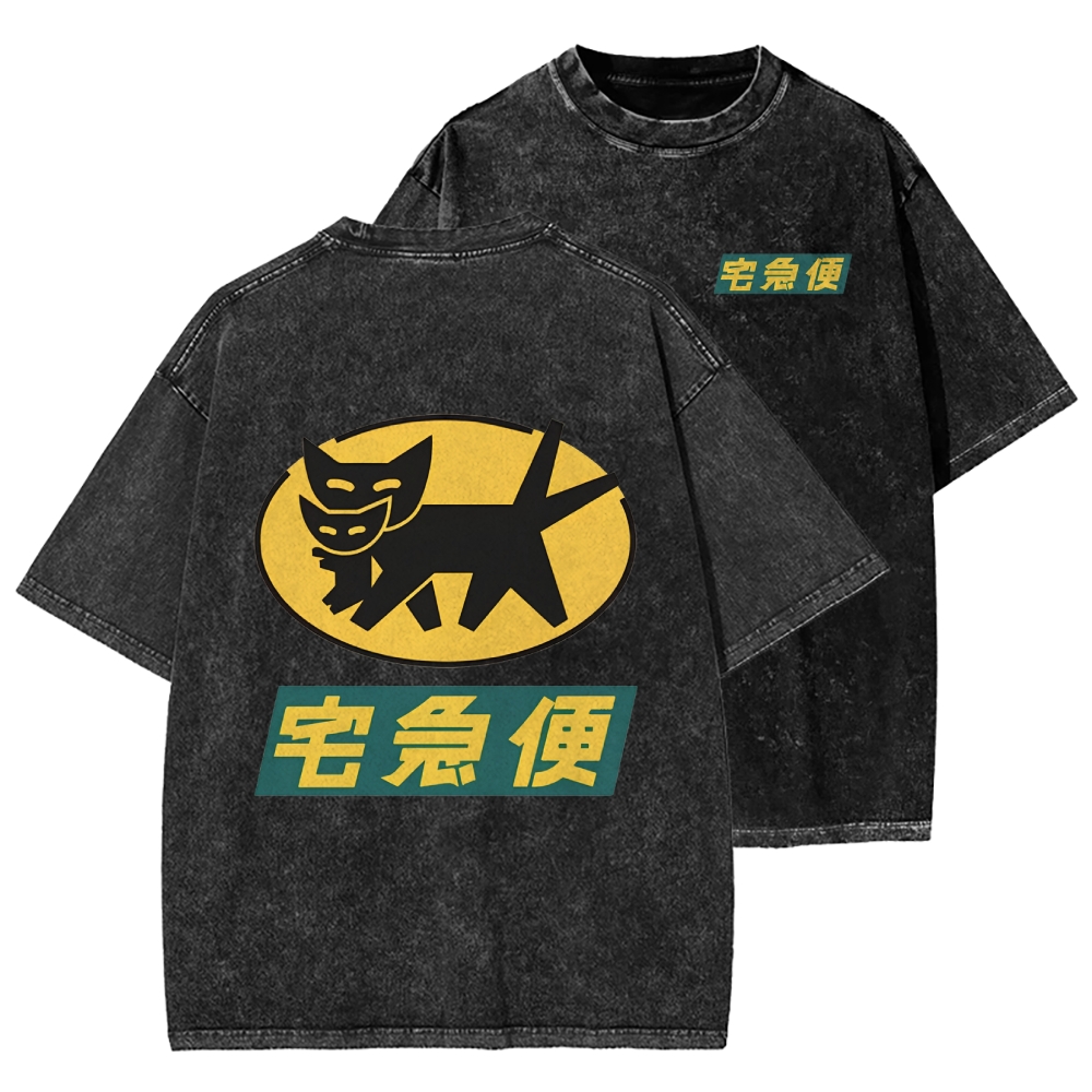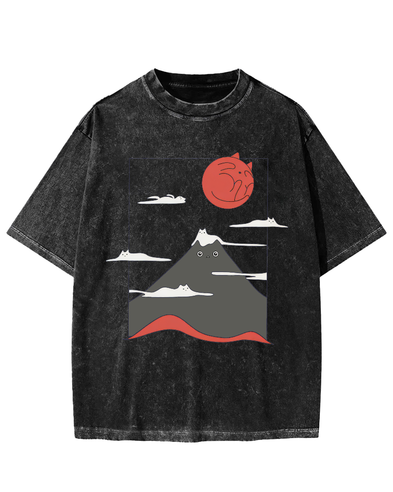Shark Riding Cat Warrior Japanese Washed T-shirt