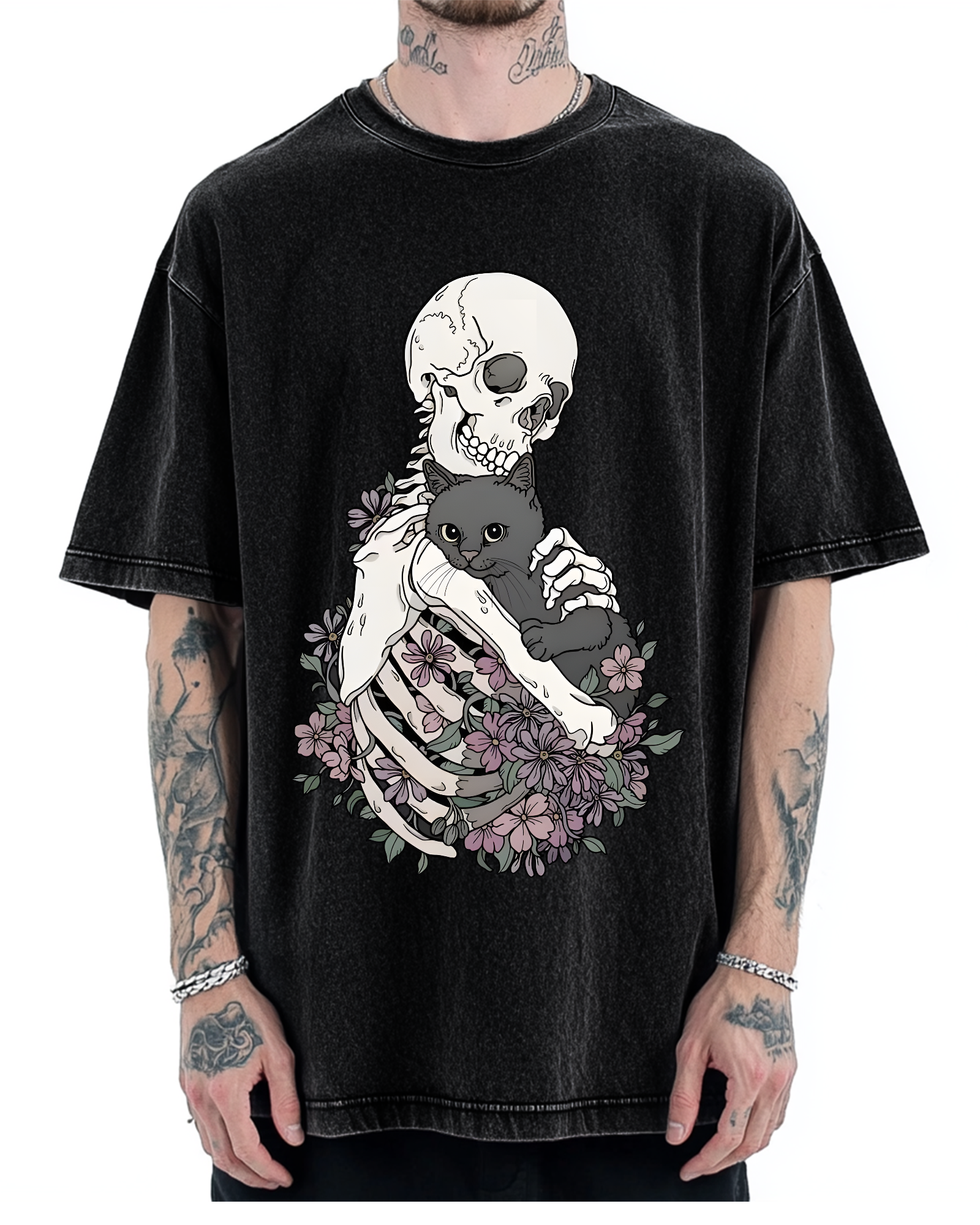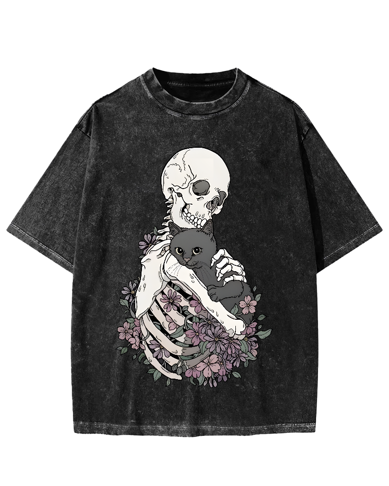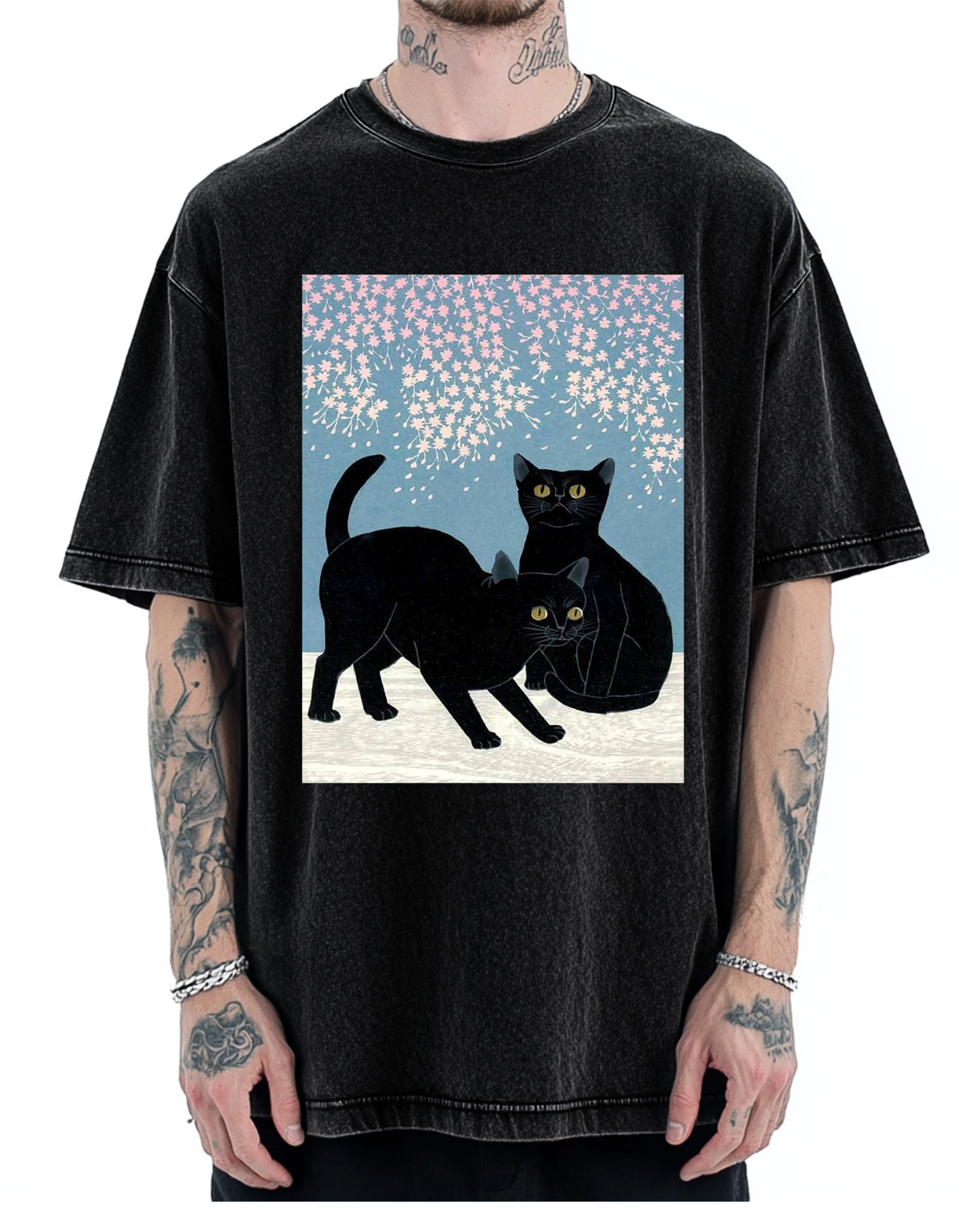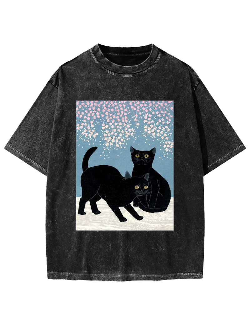 Black Cat Under The Sakura Vintage Washed T-shirt