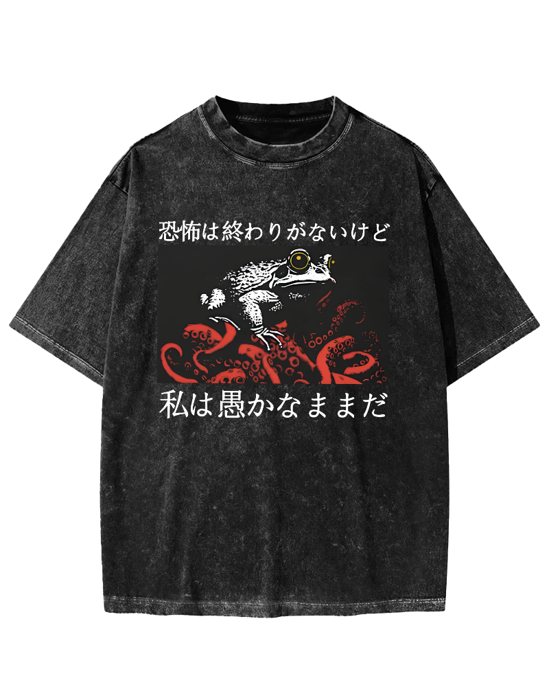 Terror knows no bounds, yet I remain a foolish Japanese frog Vintage Washed T-shirt