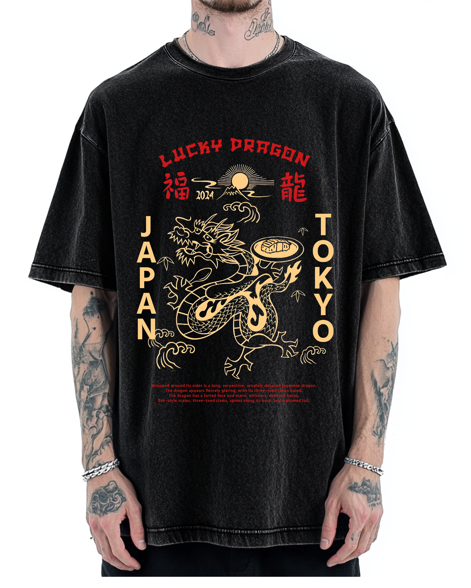 Japanese Lucky Dragon Vintage Washed T-shirt
