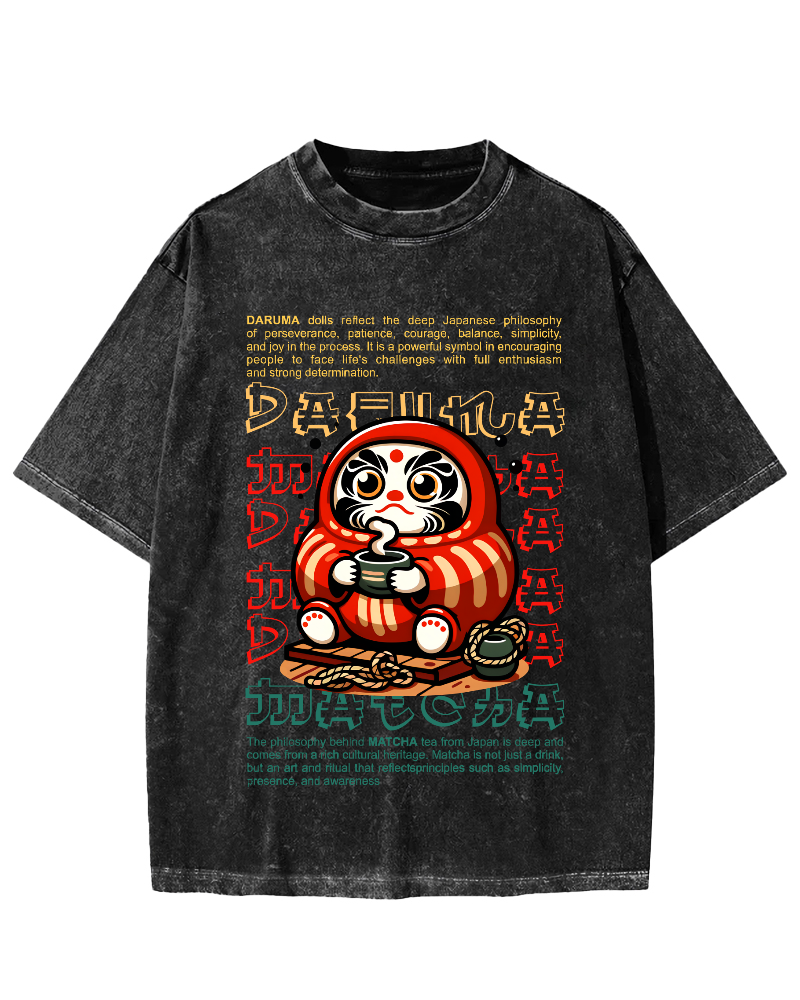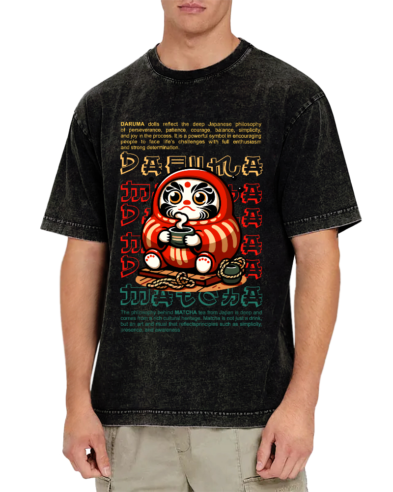 Daruma And Macha Japanese Vintage Washed T-shirt