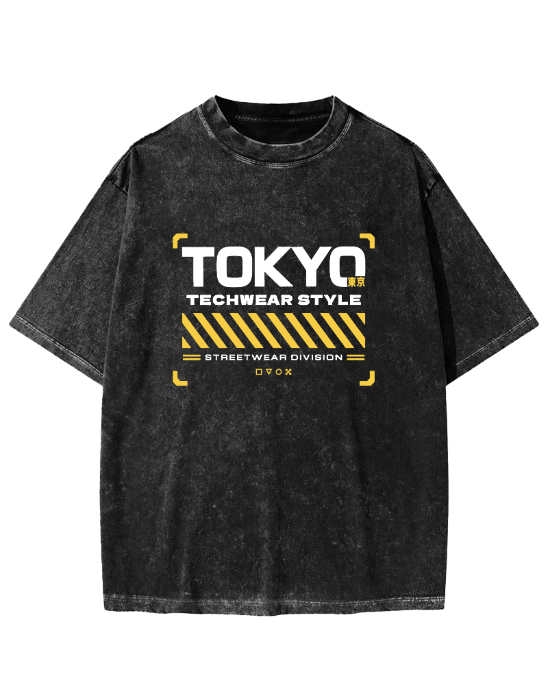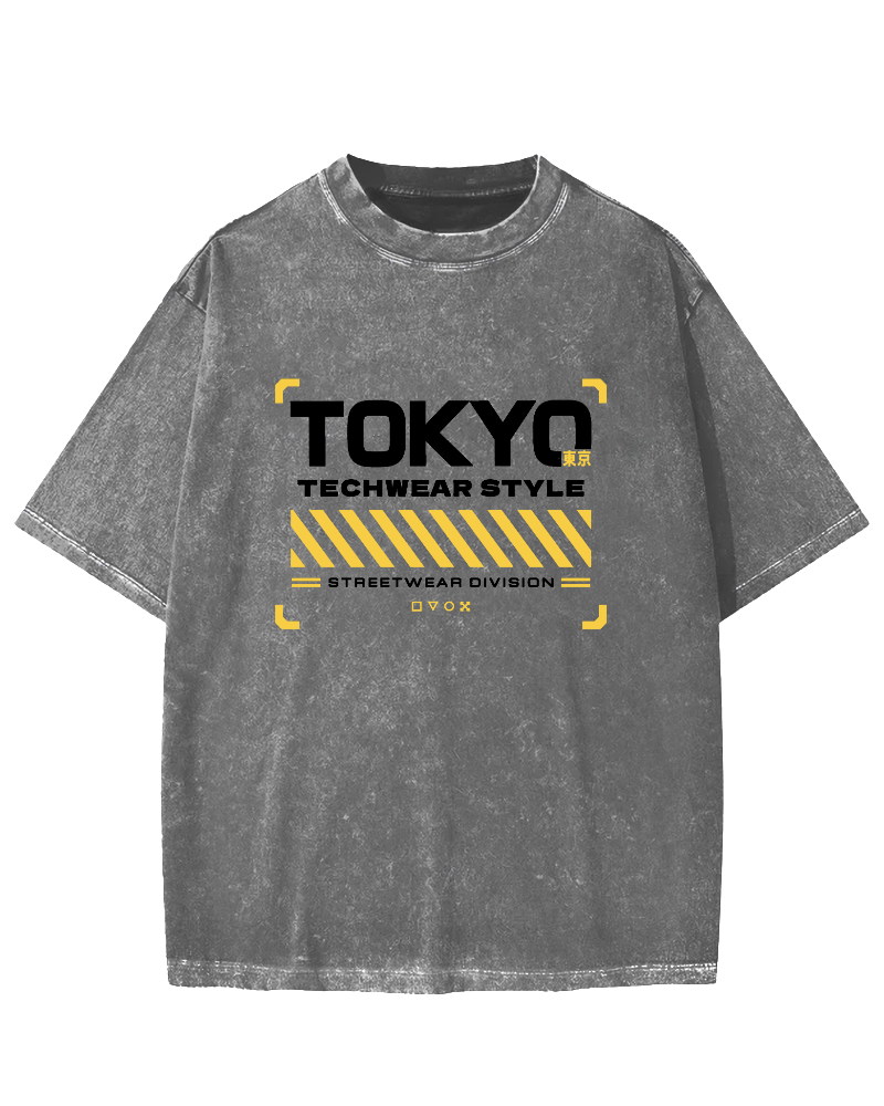 Tokyo Techwear Style Vintage Washed T-shirt