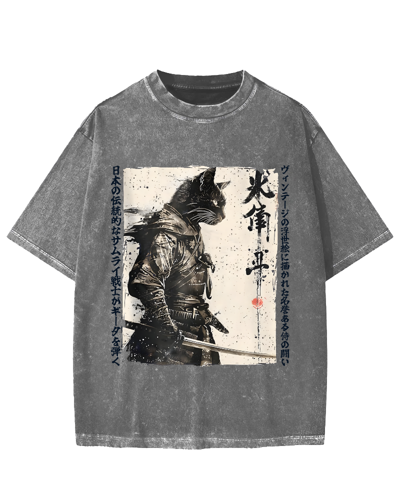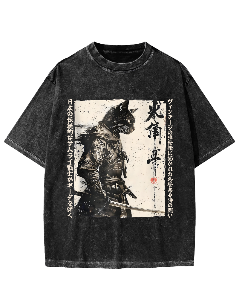 Samurai Cat Vintage Washed T-shirt