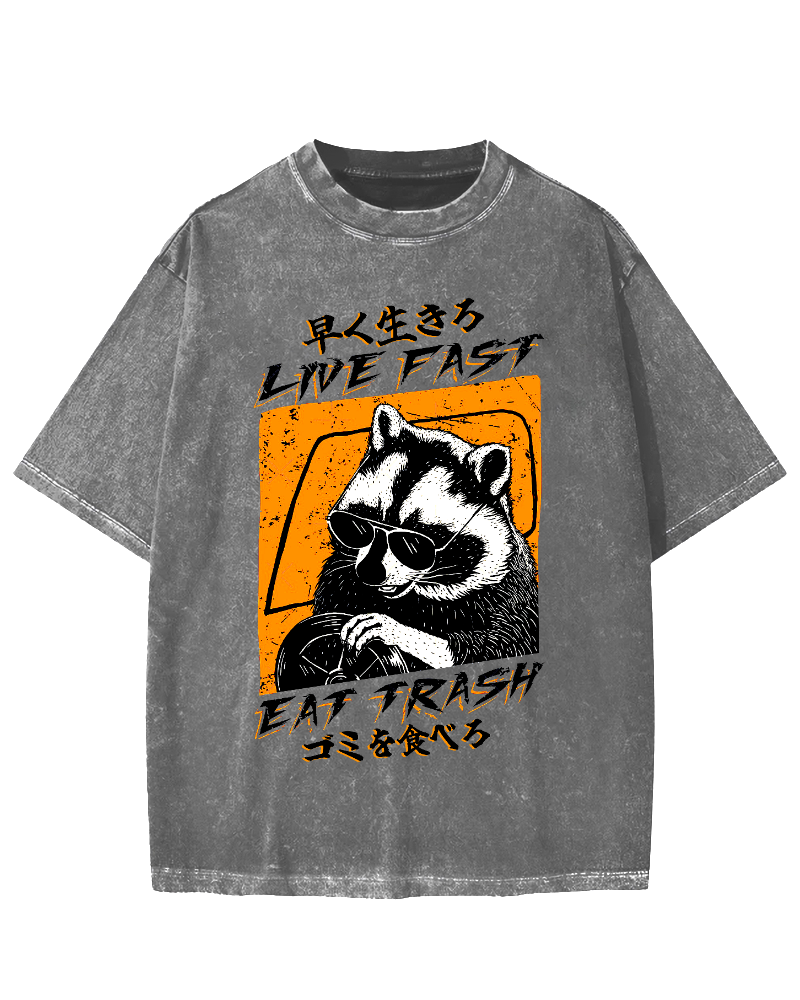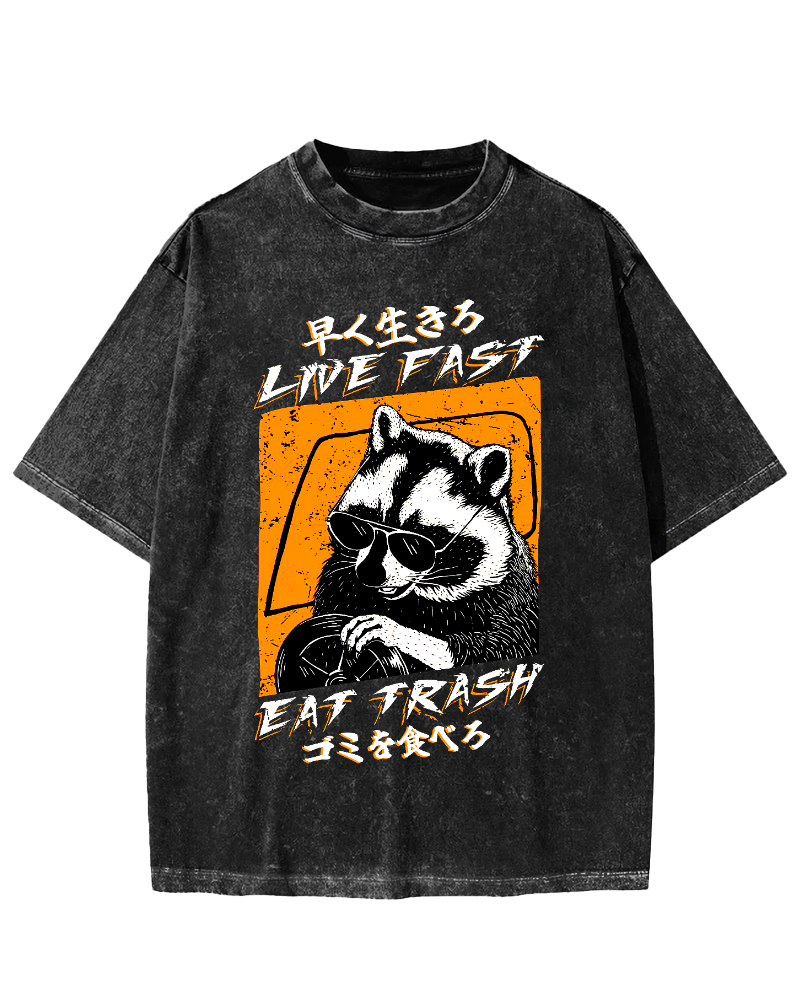 Raccoon Live Fast Eat Trash Vintage Washed T-shirt