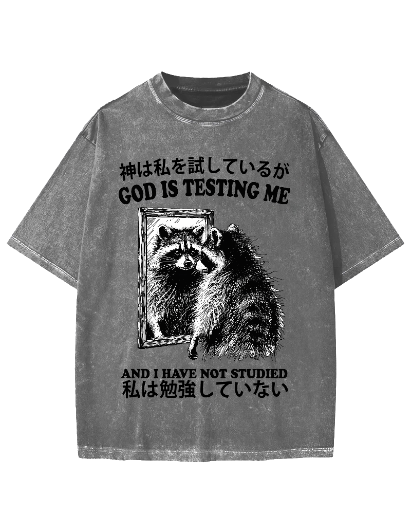 God is testing me Raccoon Vintage Washed T-shirt