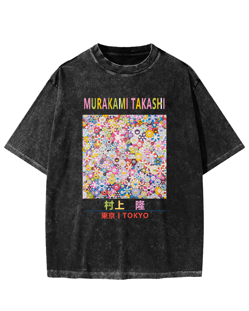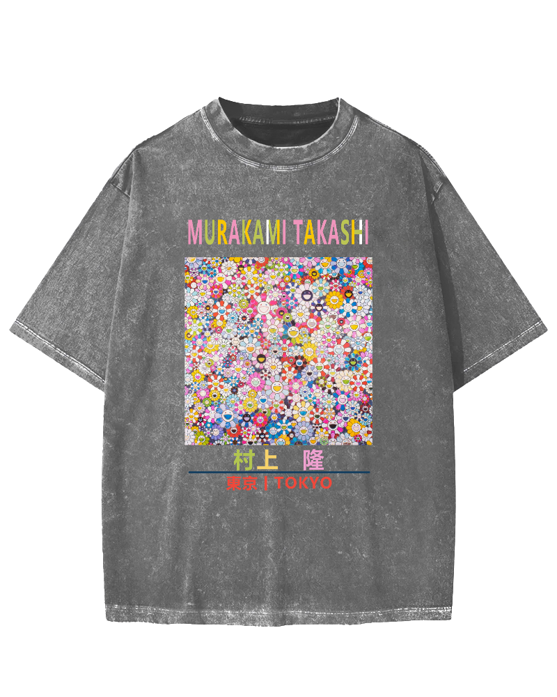 Takashi Murakami Flower & Anime Vintage Washed T-shirt