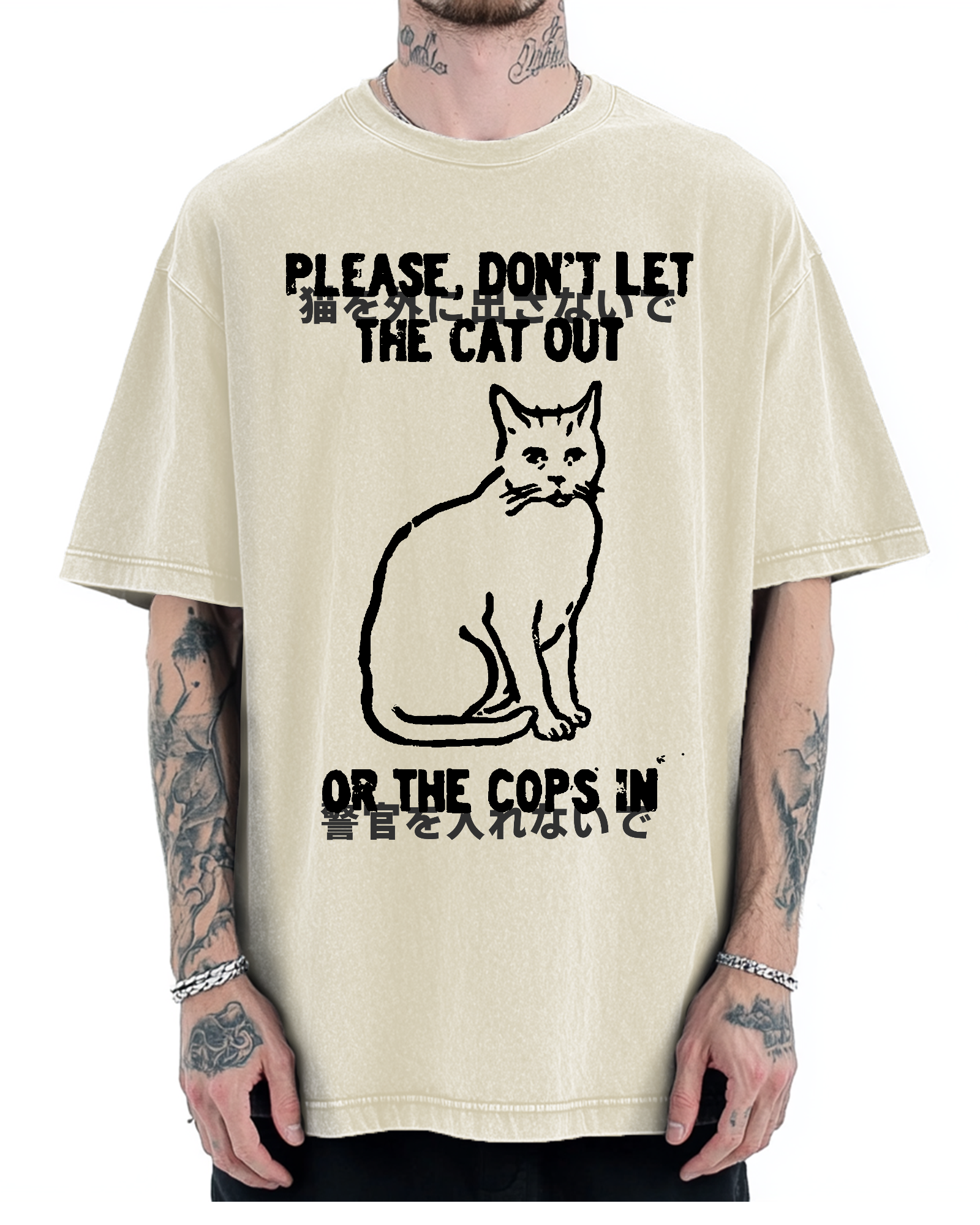 Please,don't let the cat out,or the cops in Vintage Washed T-shirt