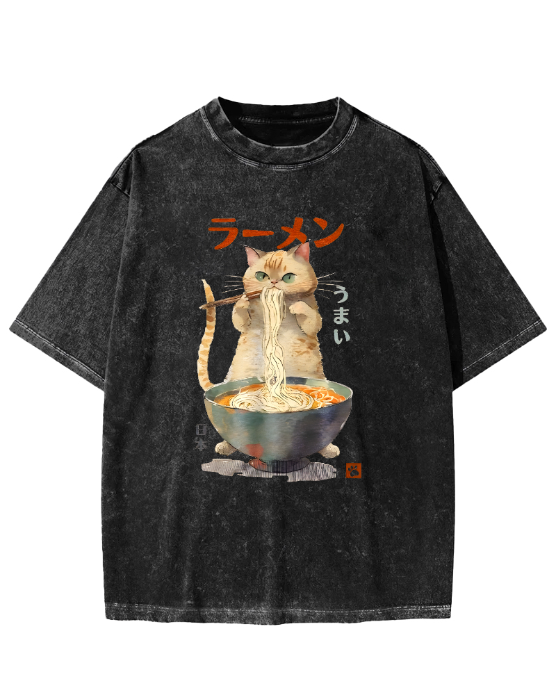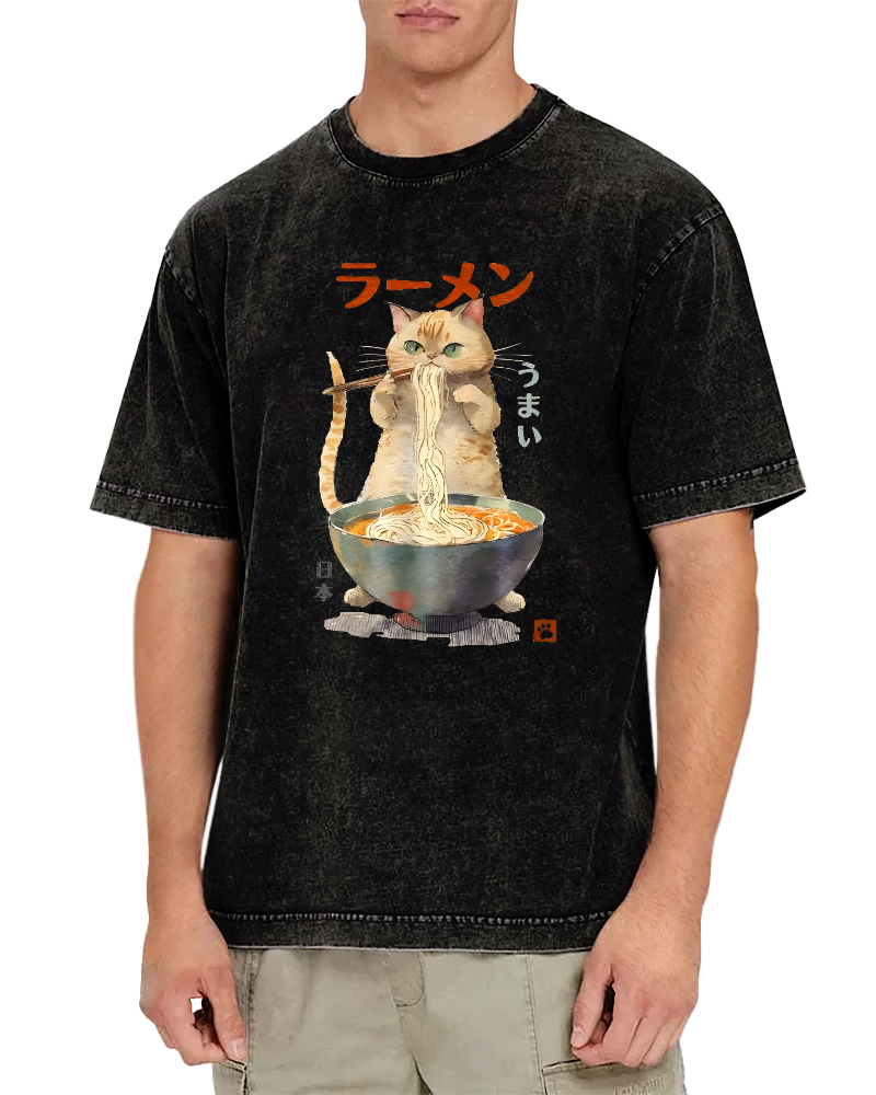 Loves Lamian Noodles Cute Cat Vintage Washed T-shirt