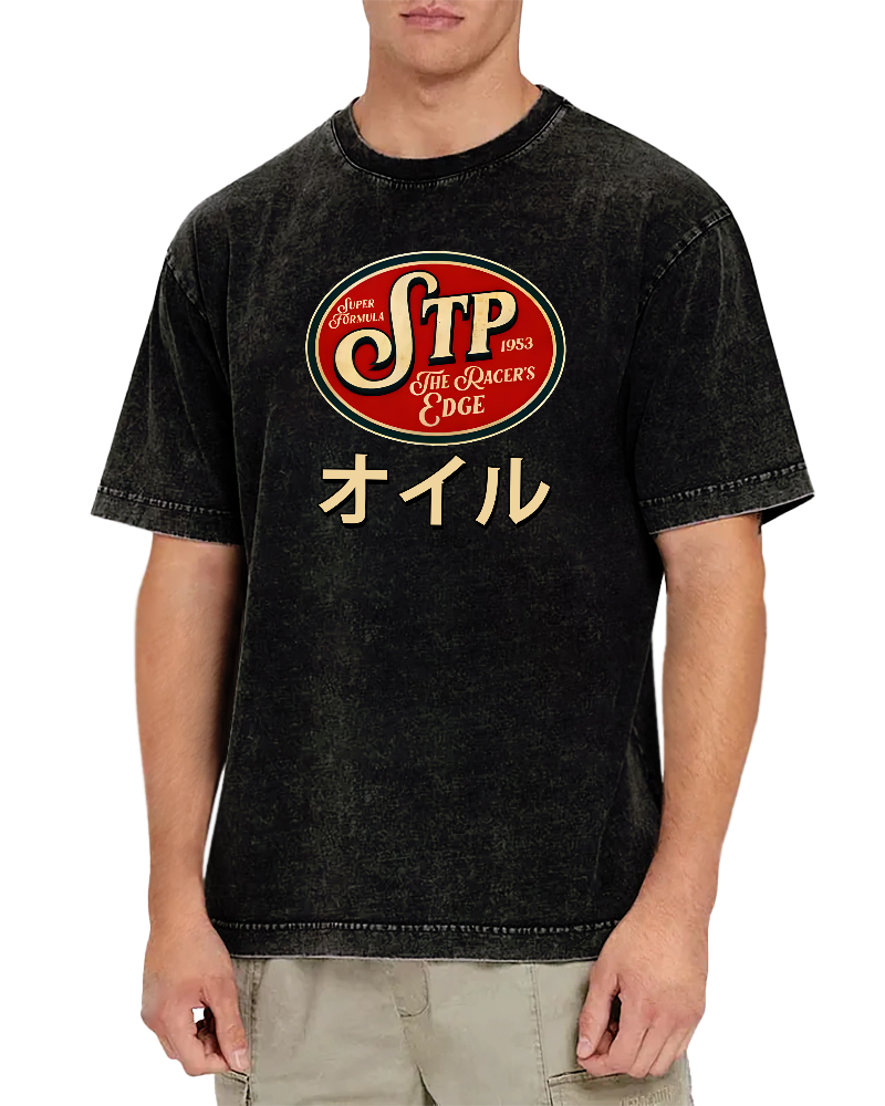 Japanese retro Chinese character locomotive Vintage Washed T-shirt
