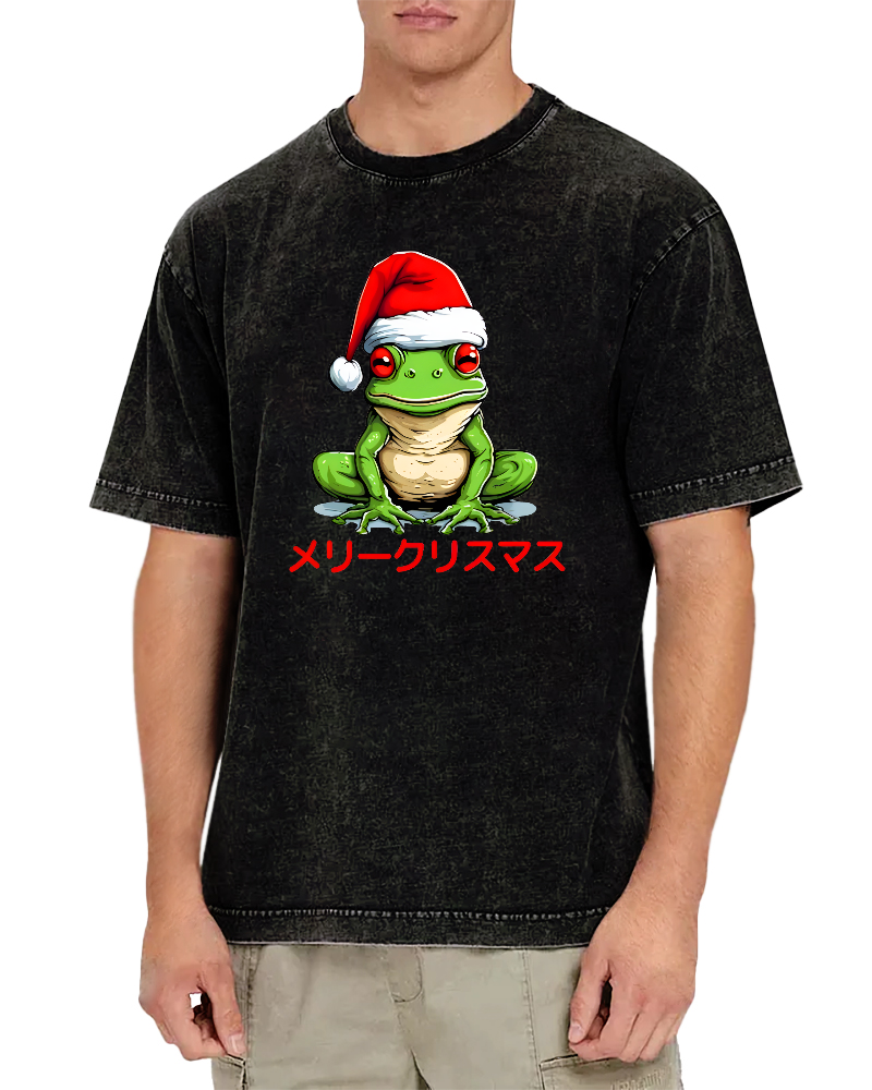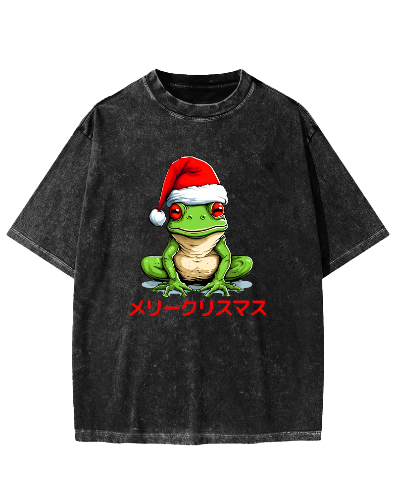 Merry Christmas, Japanese Frog Vintage Washed T-shirt