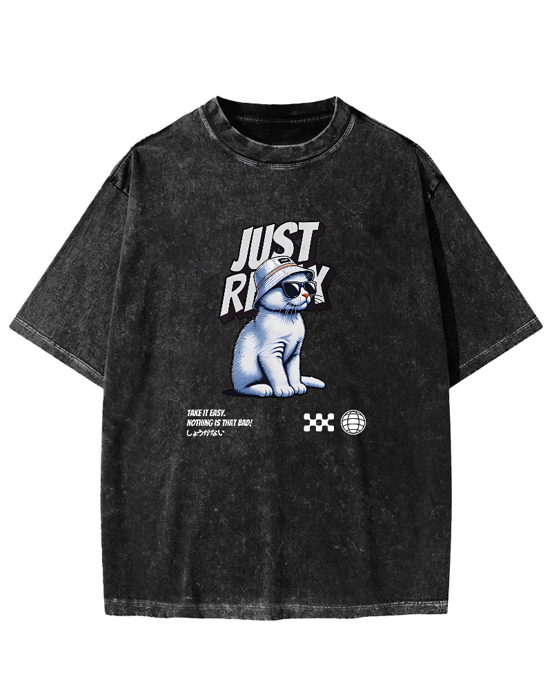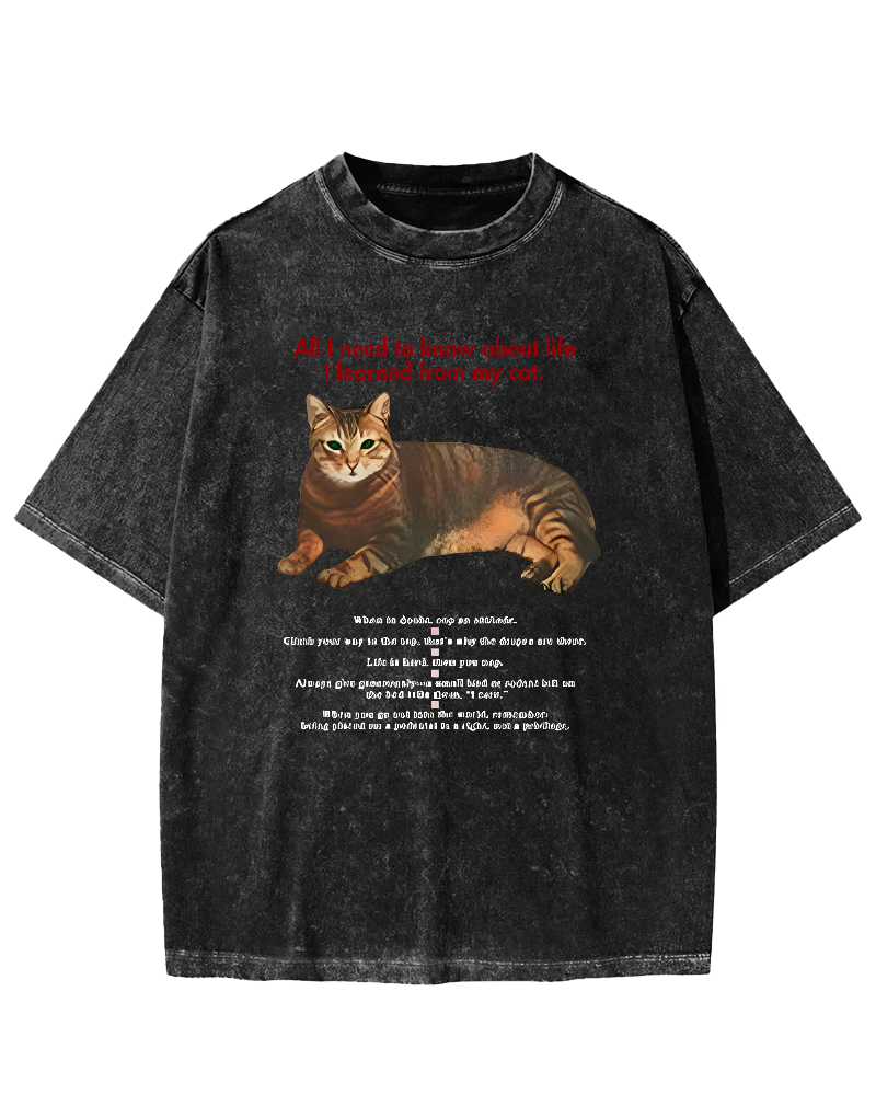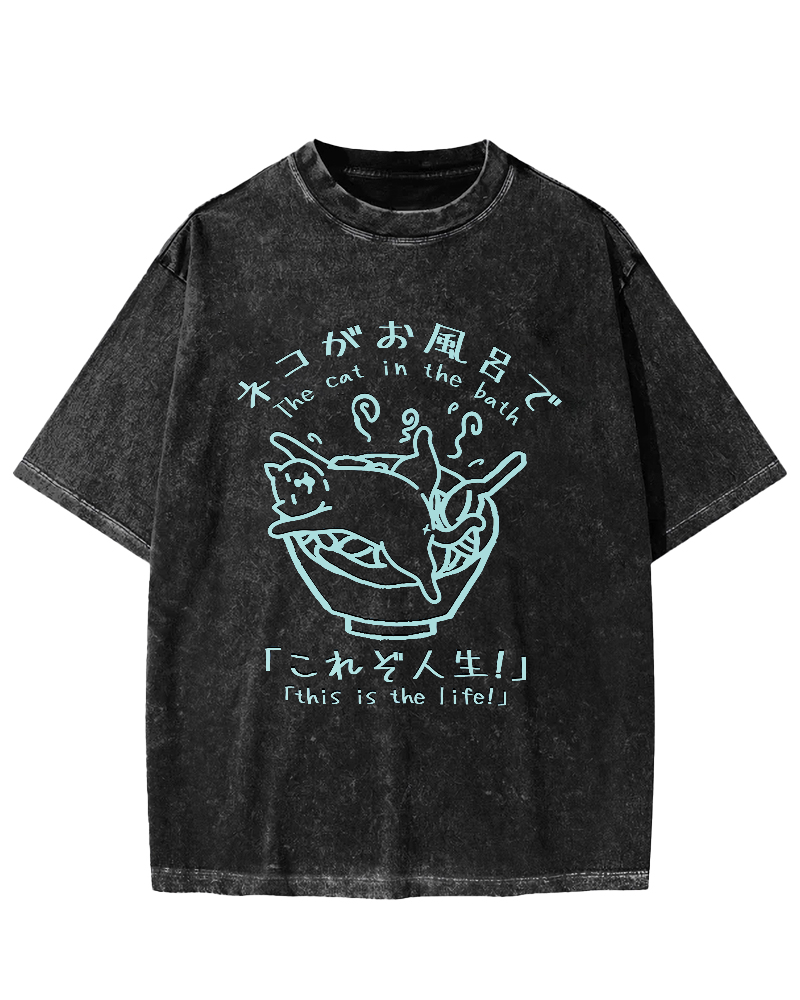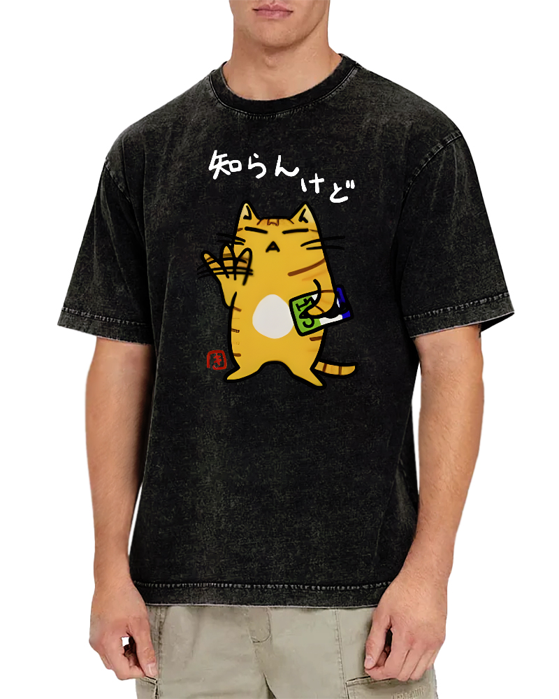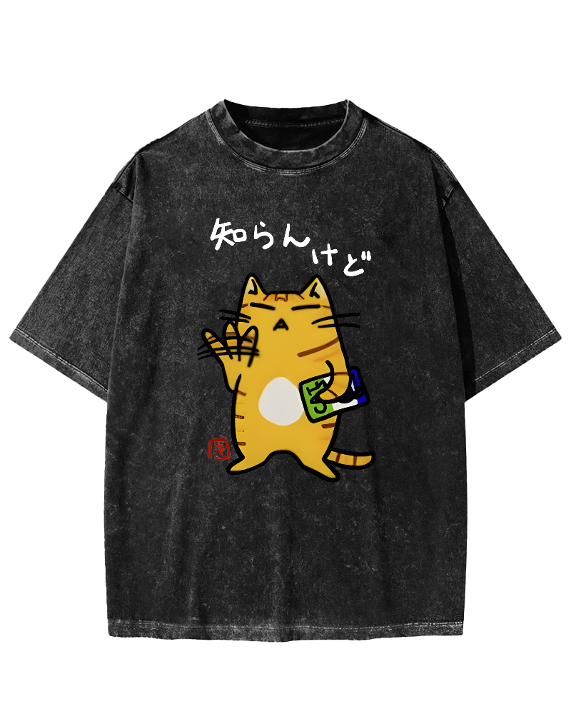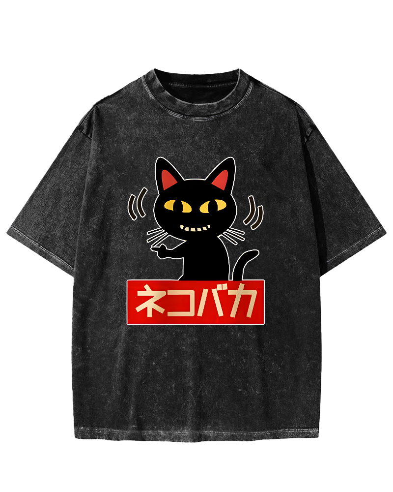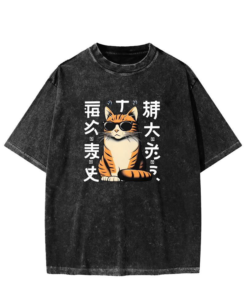 Retro Japanese Sunset Style Cat Vintage Washed T-shirt