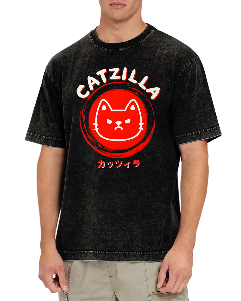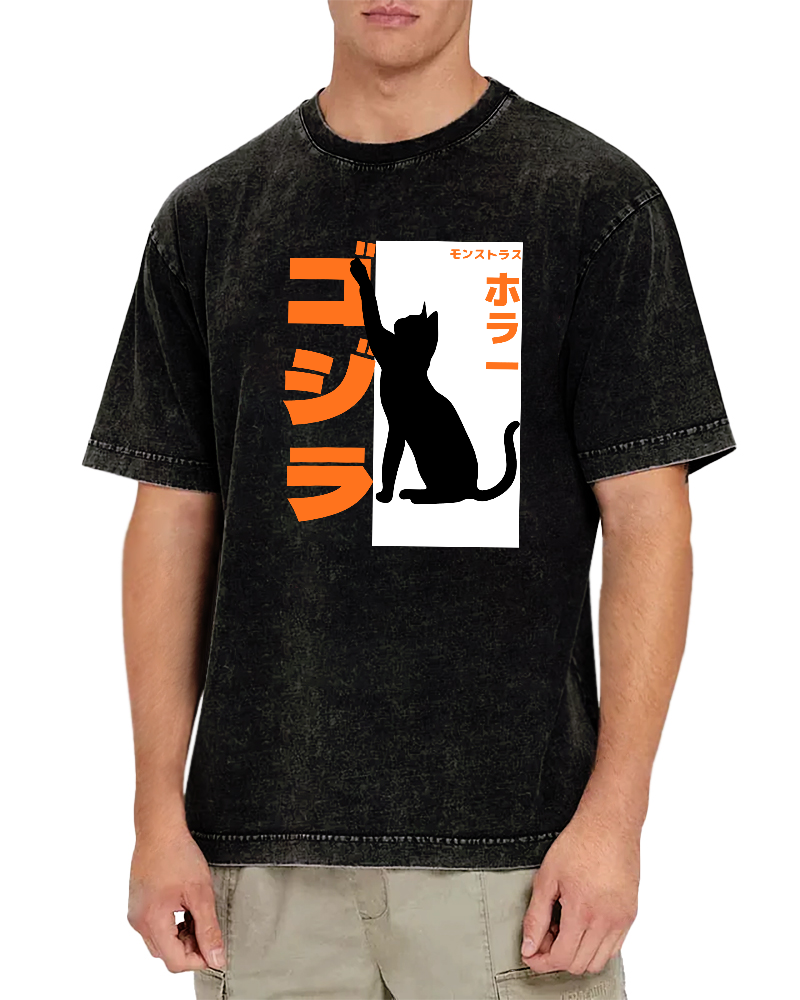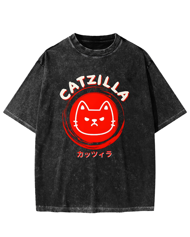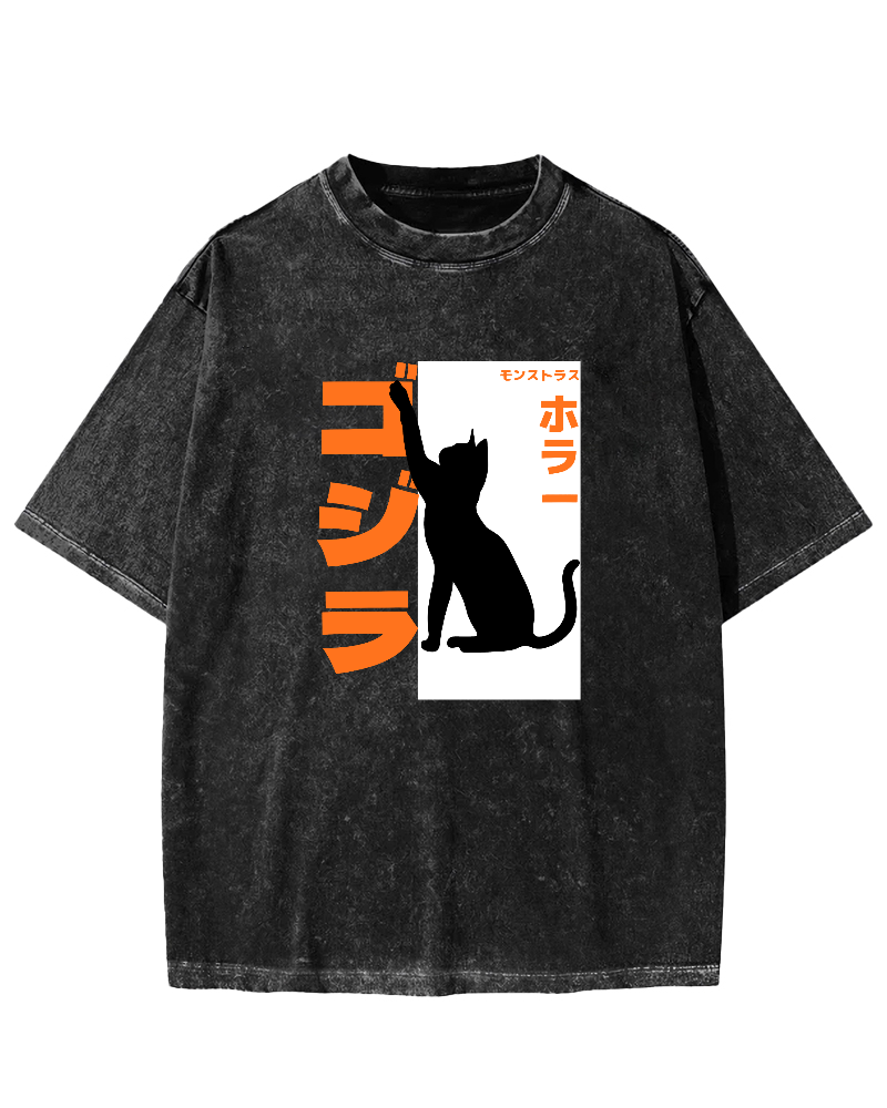 Japanese monster Catzilla invades Kaijus Vintage Washed T-shirt