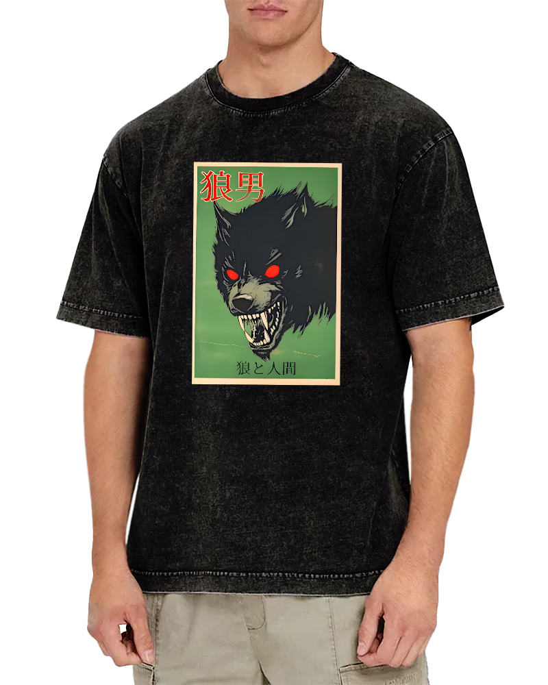 Retro Japanese Werewolf Vintage Washed T-shirt