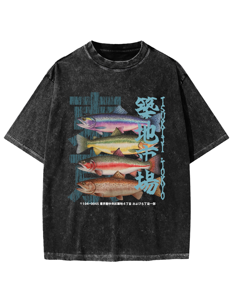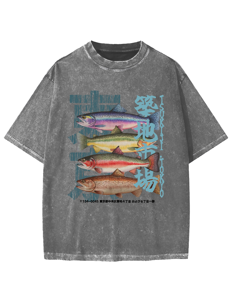 Retro Japanese deep-sea creatures Vintage Washed T-shirt