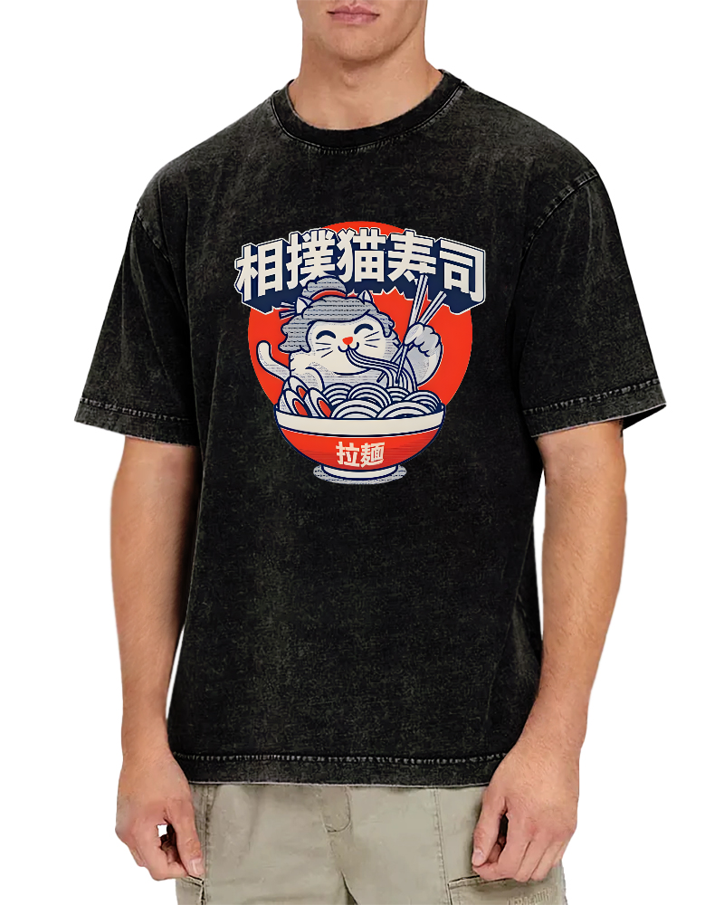 Sumo cat Lamian Noodles feast Vintage Washed T-shirt