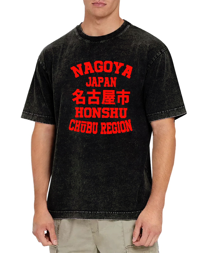Nagoya City Retro Chinese Characters Vintage Washed T-shirt