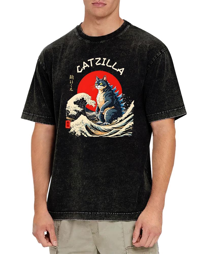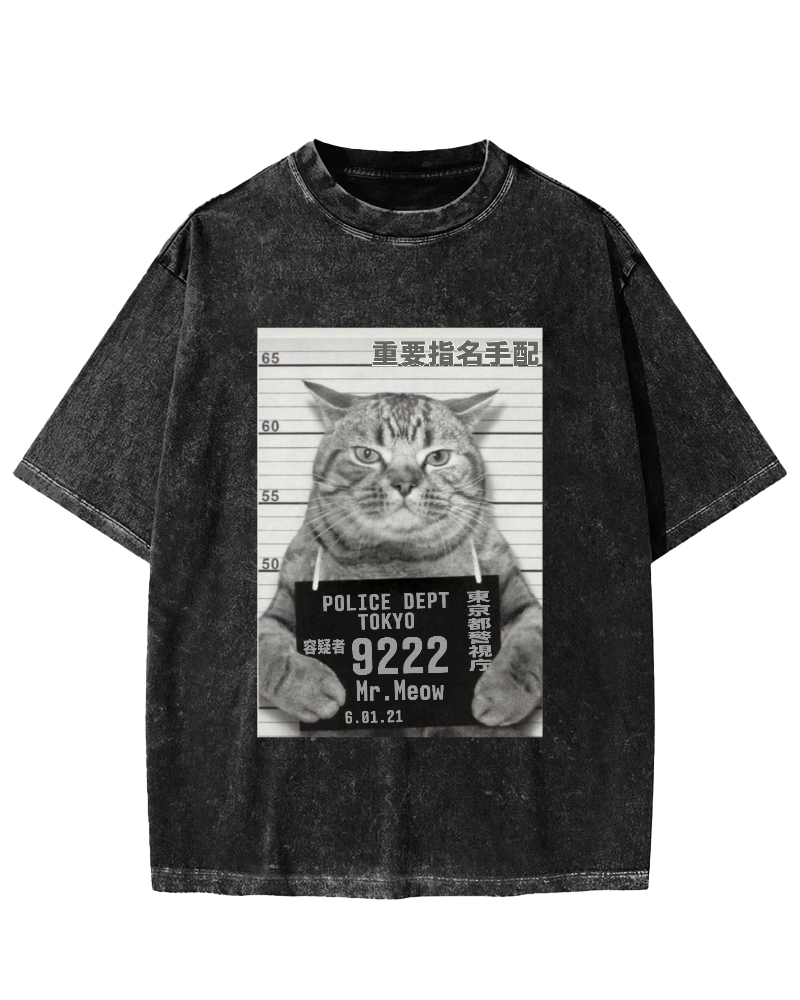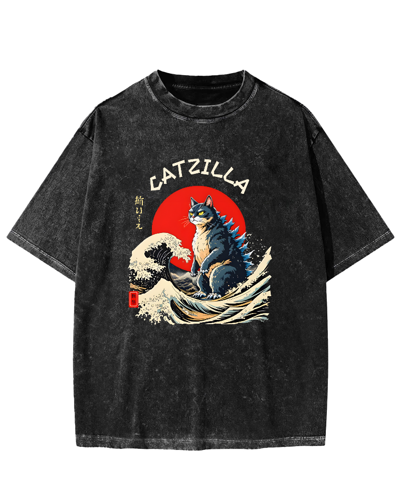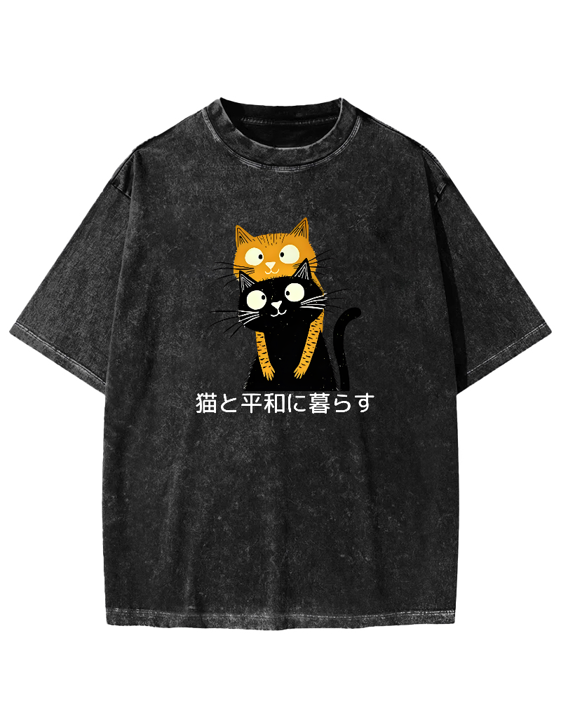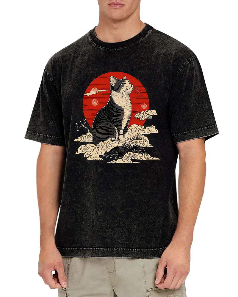 Retro Cat Japanese Art Vintage Washed T-shirt