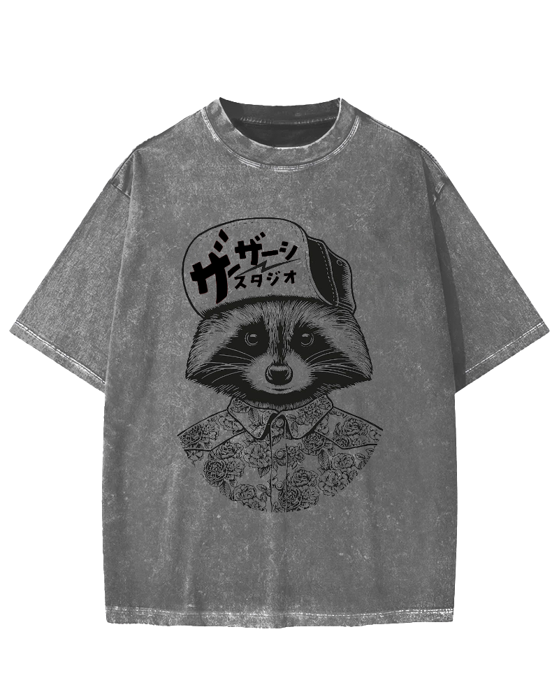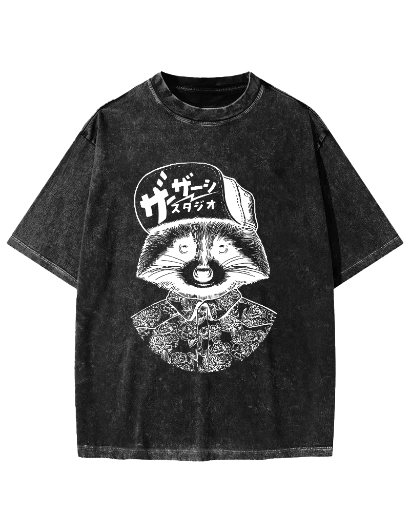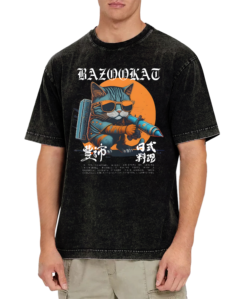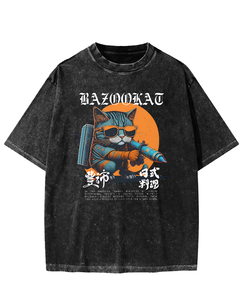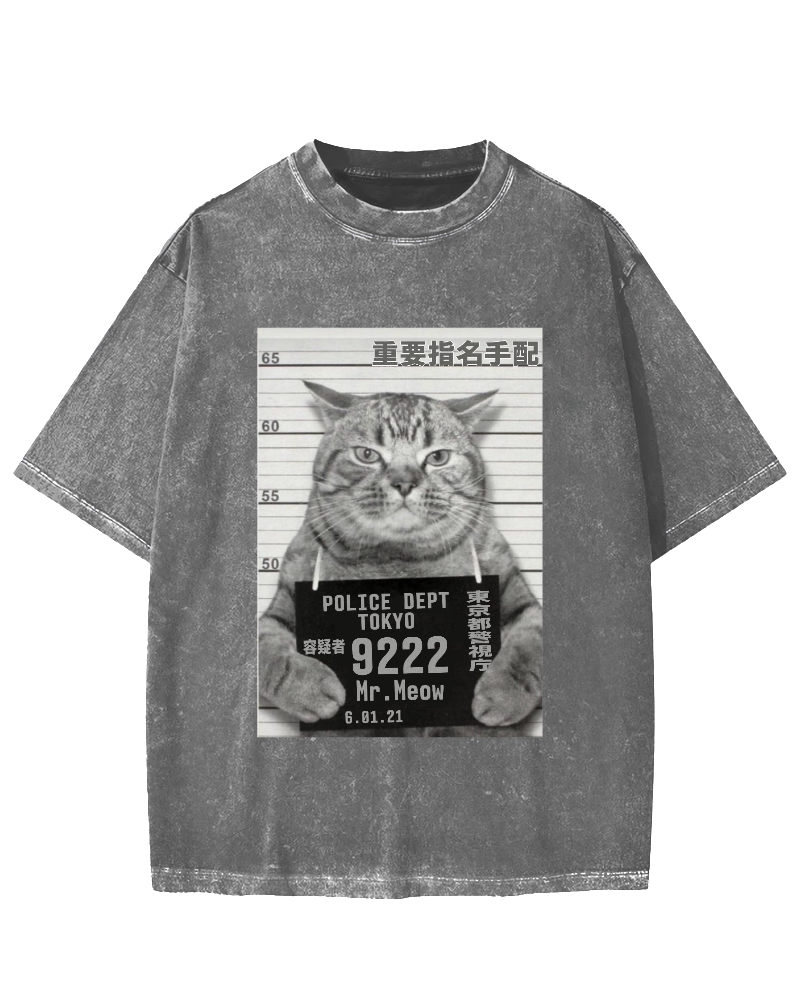 Retro Cat Japanese Art Vintage Washed T-shirt