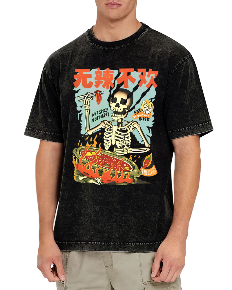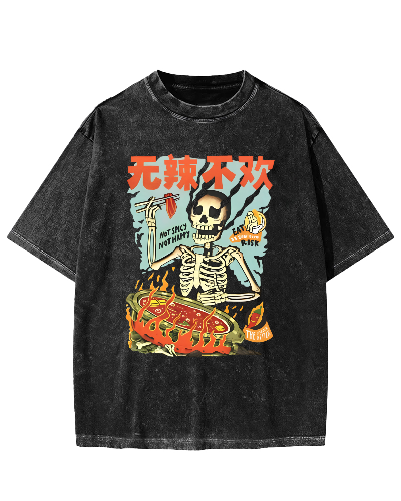 No spiciness, no joy, skeleton, Japanese style Vintage Washed T-shirt
