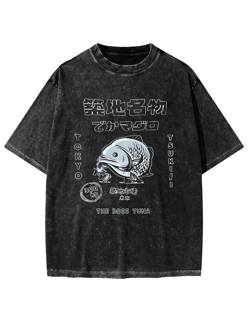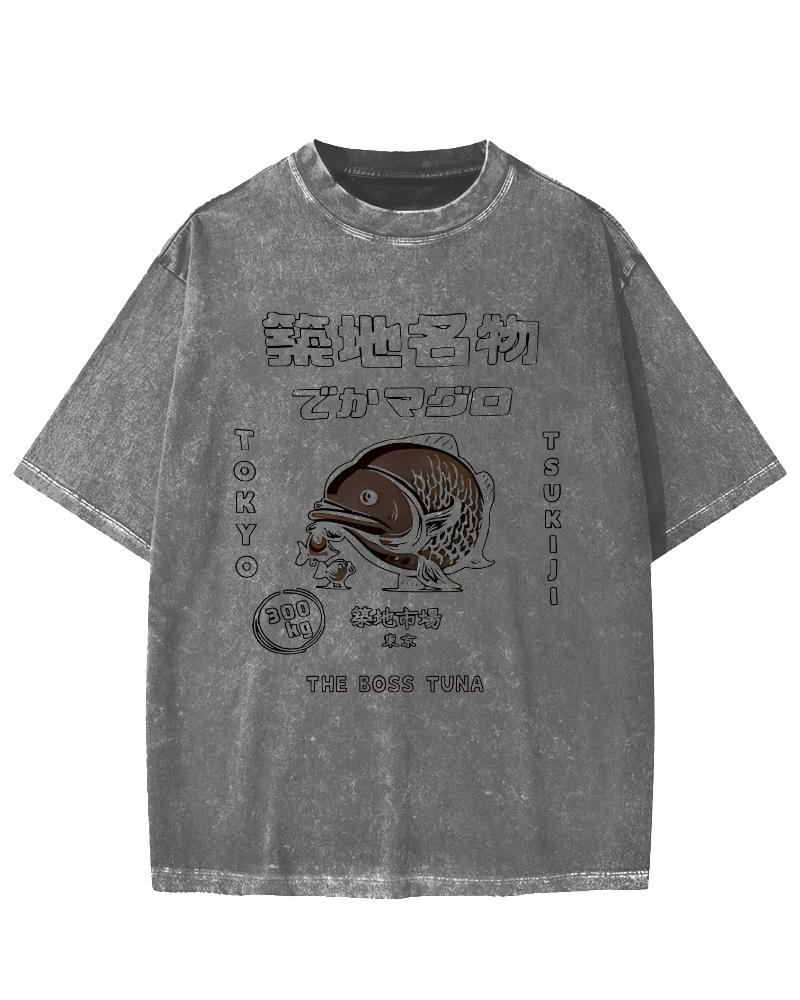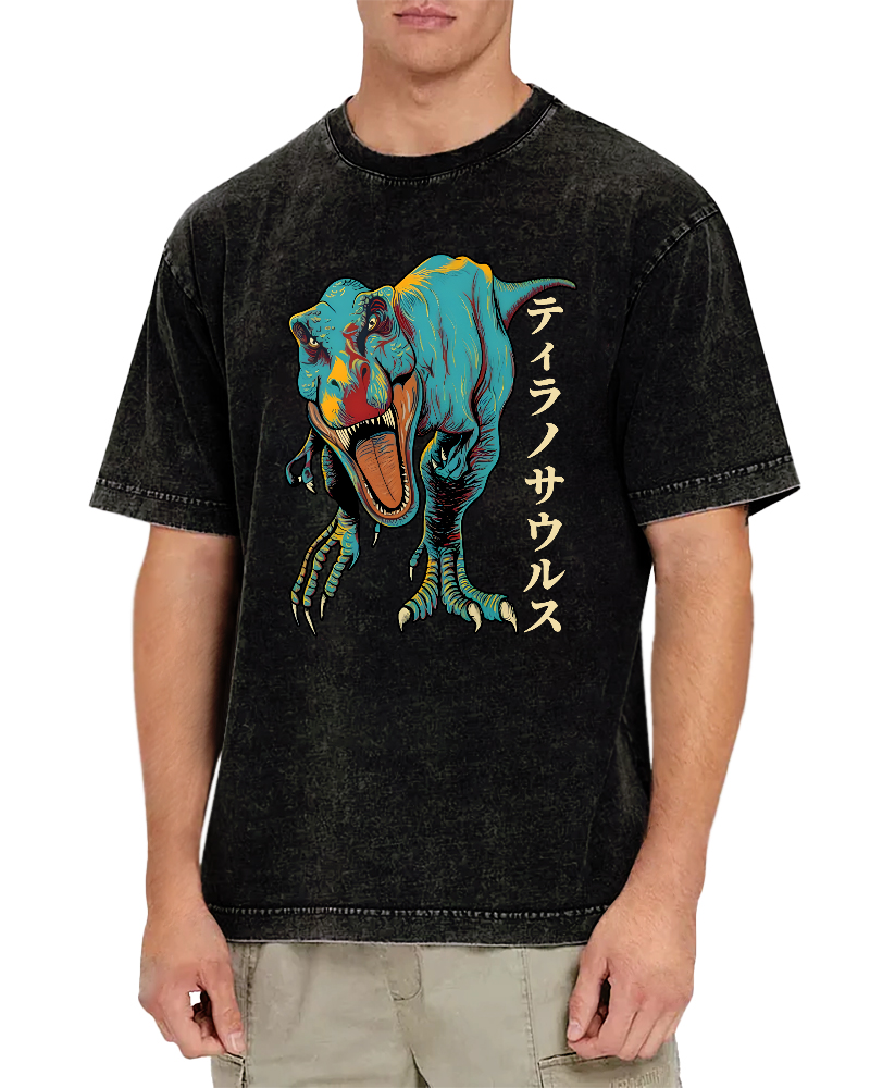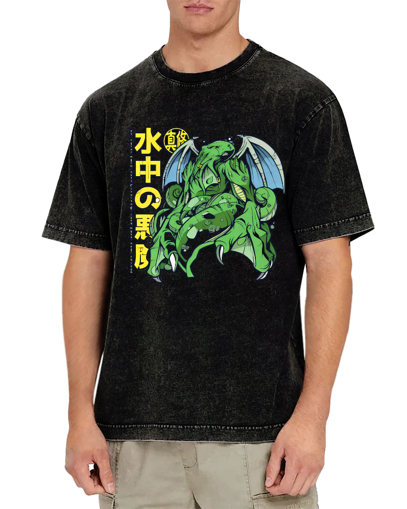Japanese Style Water Dolphin Vintage Washed T-shirt