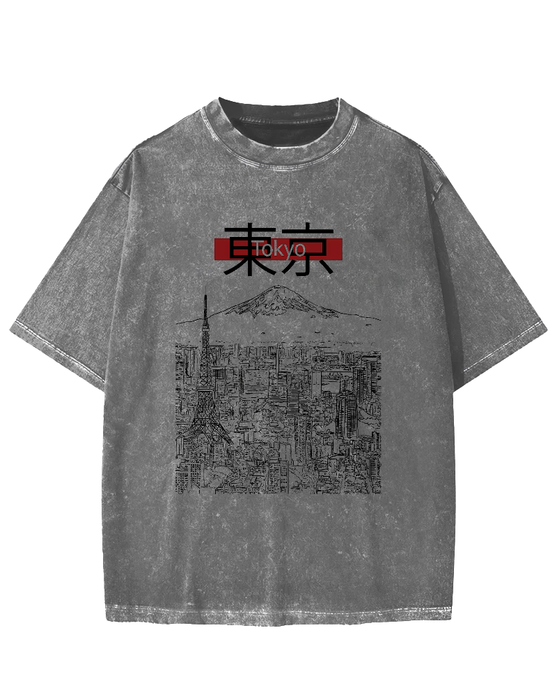 Tokyo City and Muji Mountain Vintage Washed T-shirt