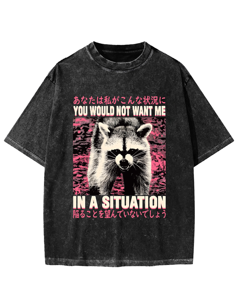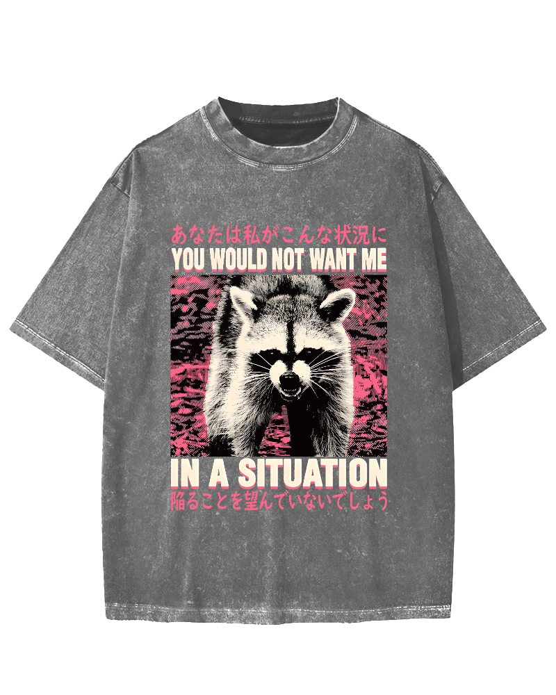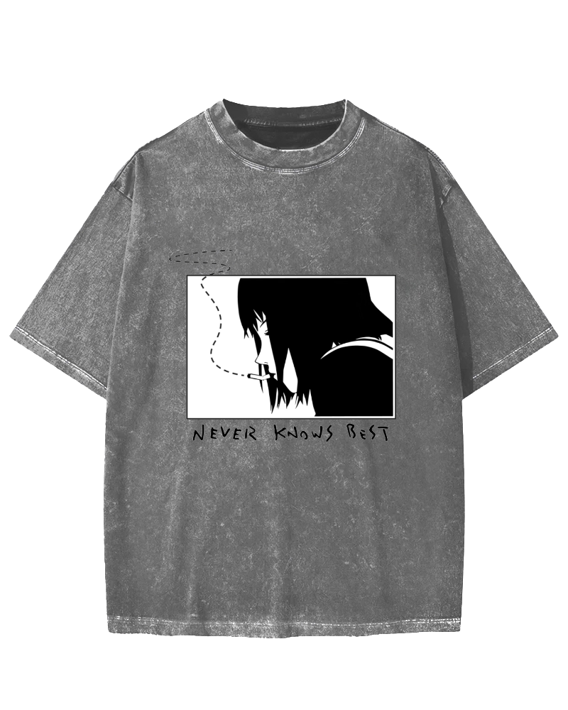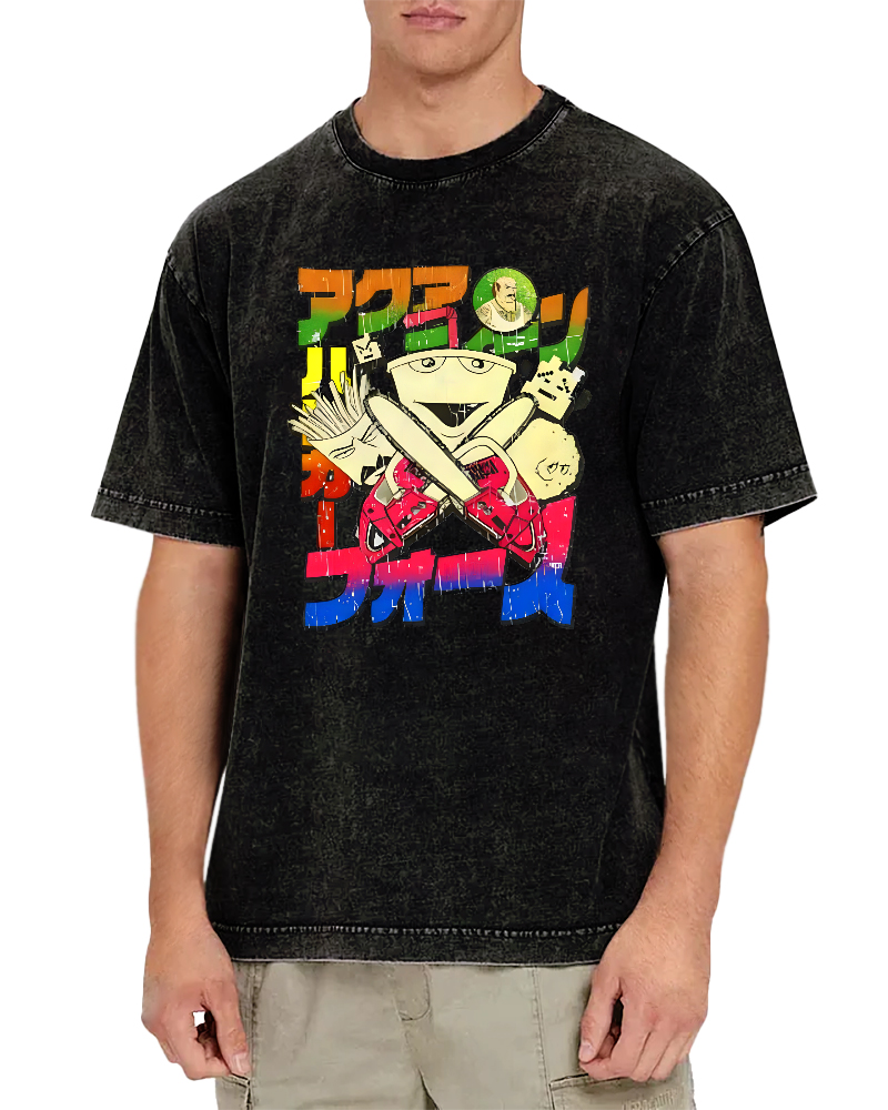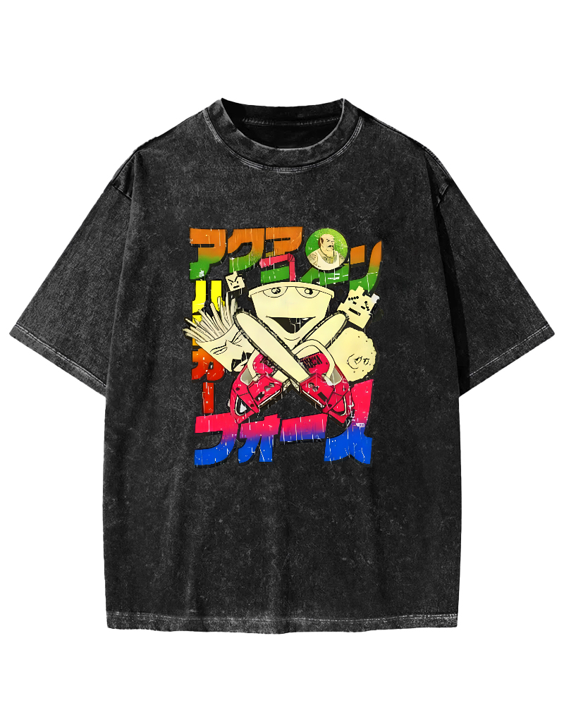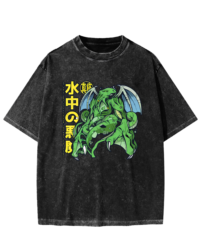Japanese Retro Demon Anime Vintage Washed T-shirt