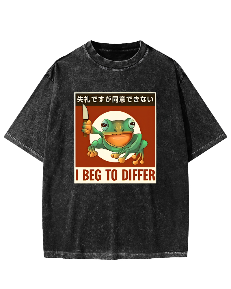 I Beg To Differ Frog Japanese Vintage Washed T-shirt