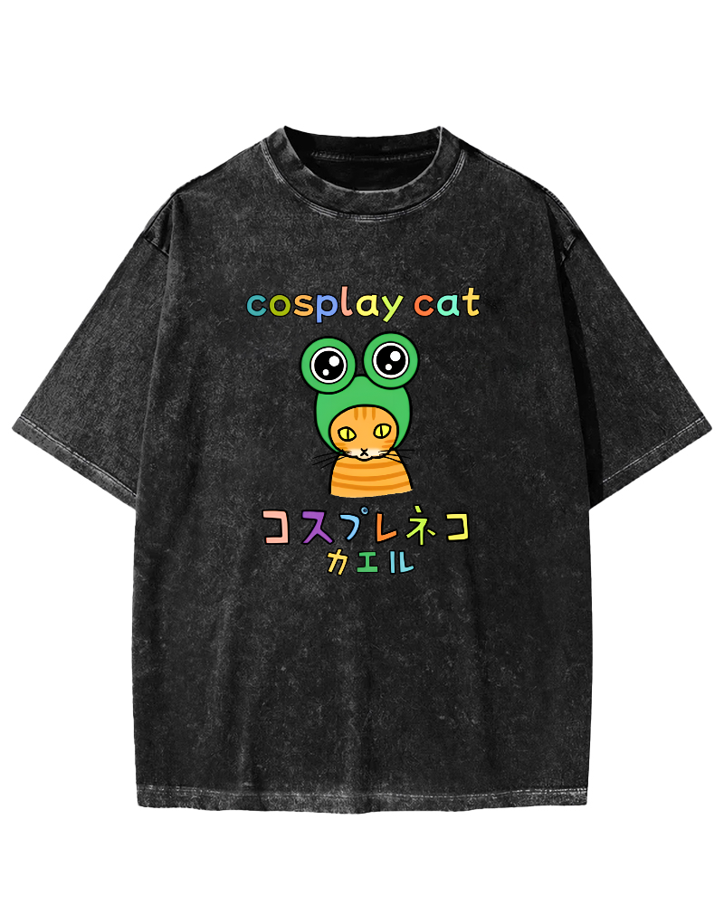 Cosplay Cat: Neko Kaeru Frog Vintage Washed T-shirt