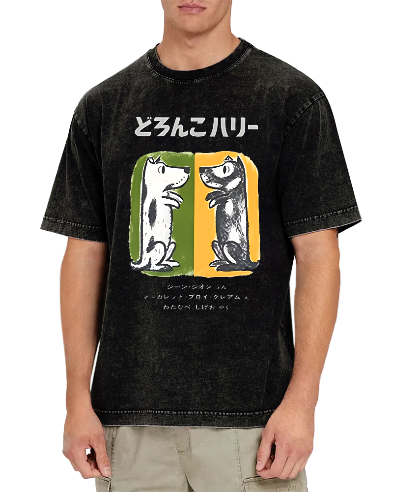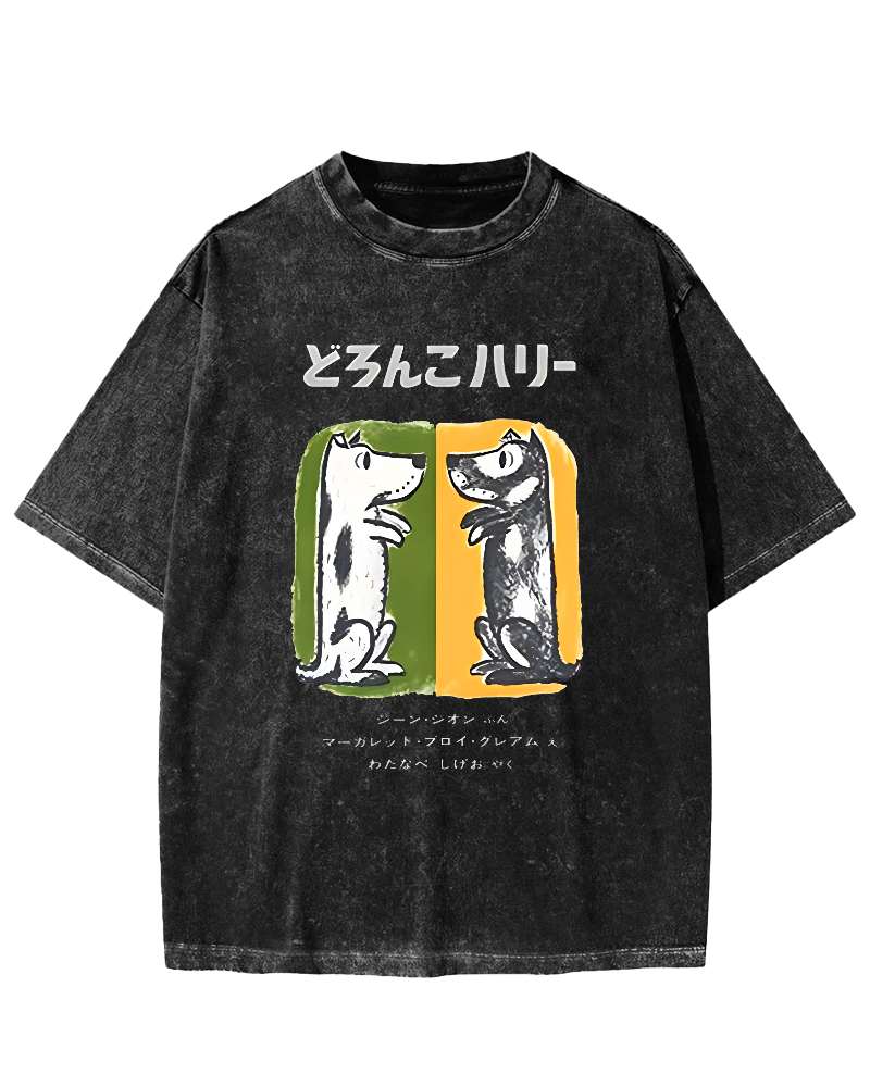Cute Japanese style pet dog Vintage Washed T-shirt